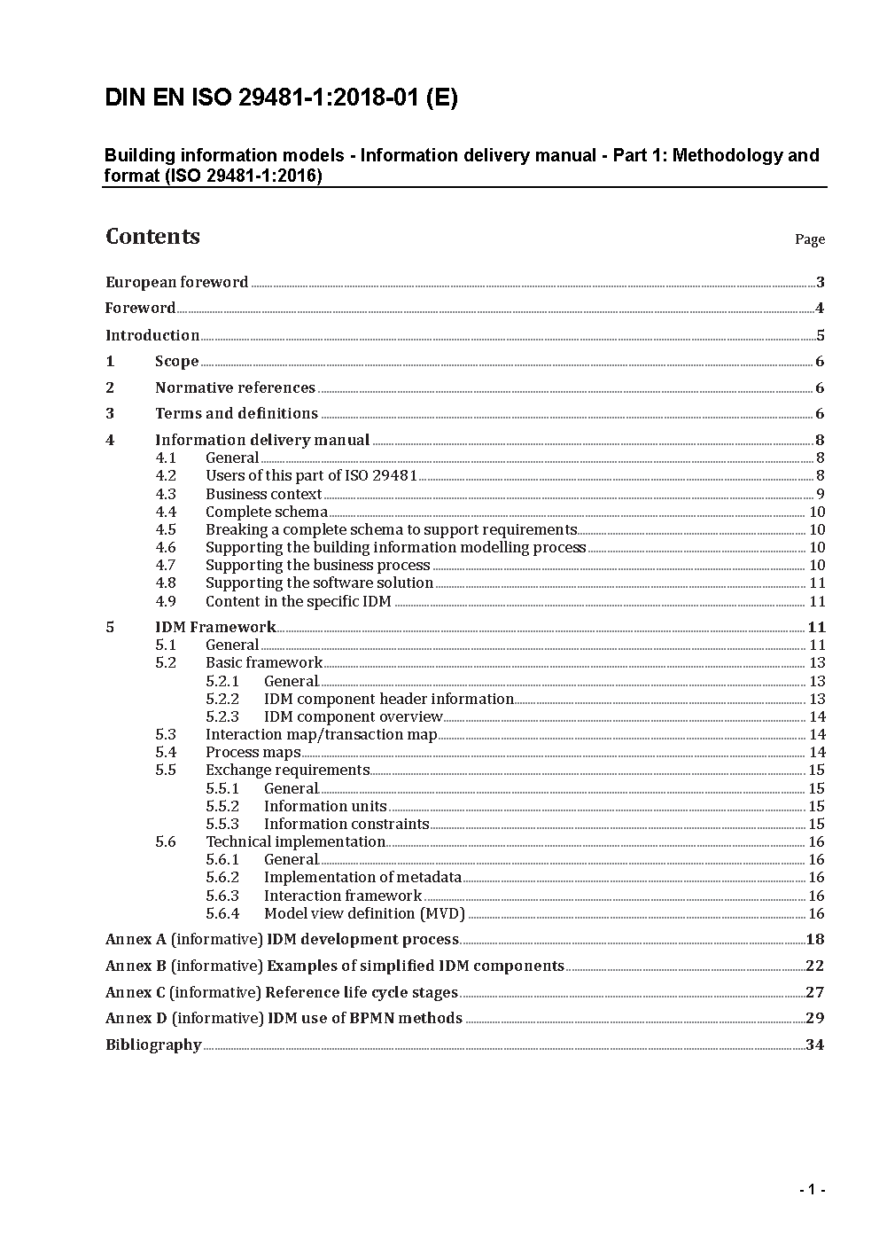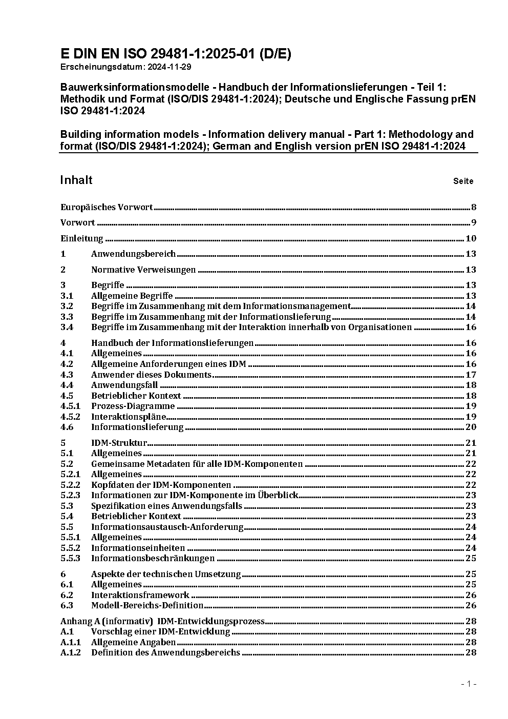 Building information models - Information delivery manual - Part 1: Methodology and format (ISO 29481-1:2016); German and English version prEN ISO 29481-1:2016