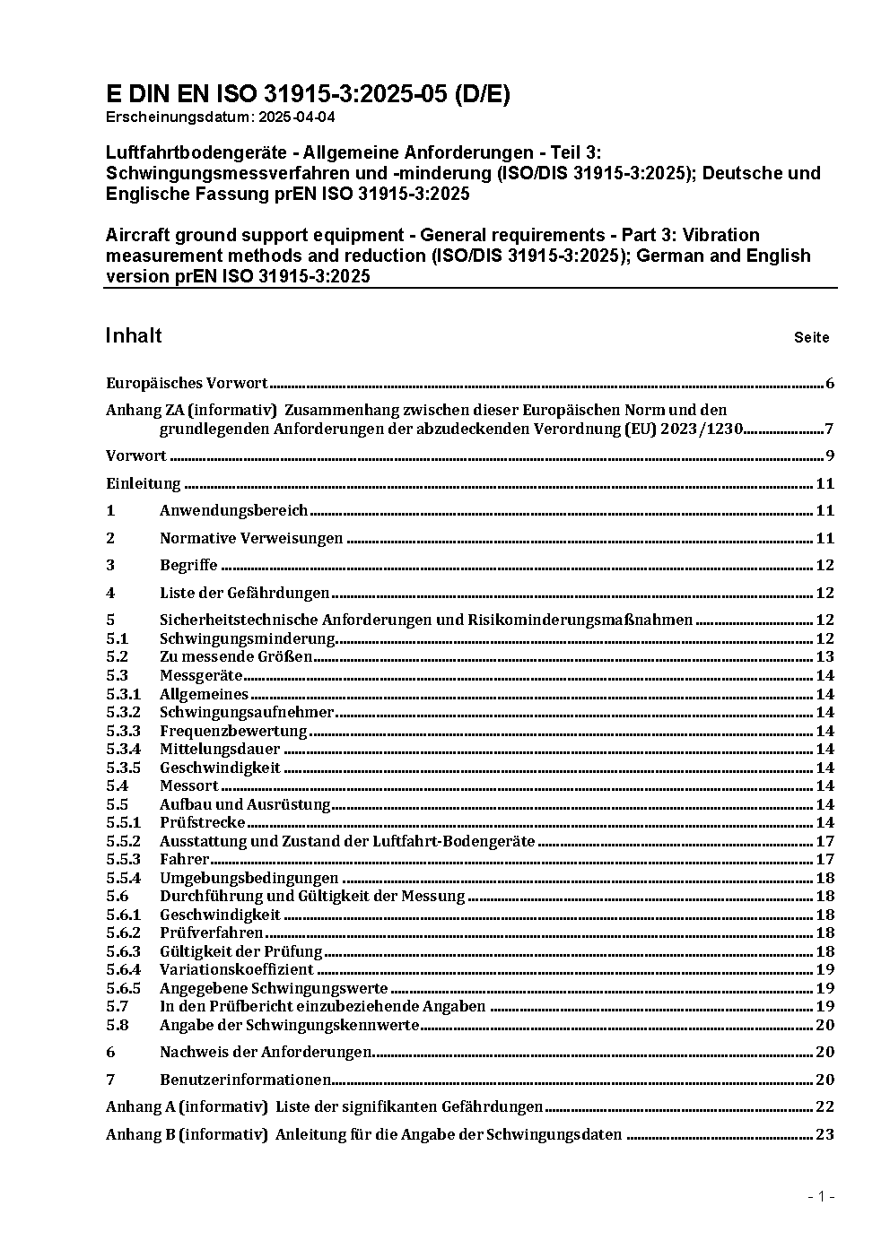 Luftfahrtbodengeräte - Allgemeine Anforderungen - Teil 3: Schwingungsmessverfahren und -minderung (ISO/DIS 31915-3:2025); Deutsche und Englische Fassung prEN ISO 31915-3:2025
