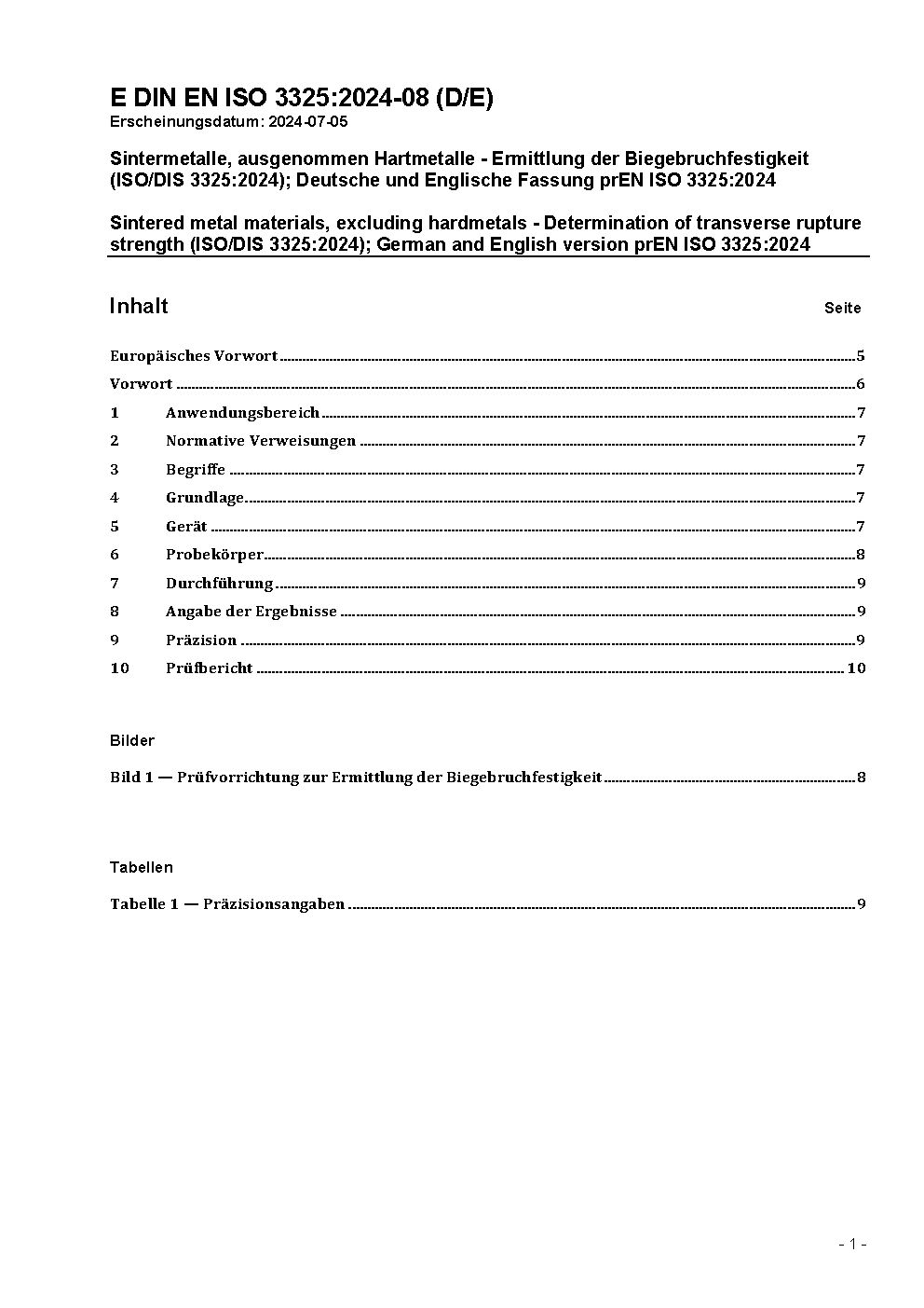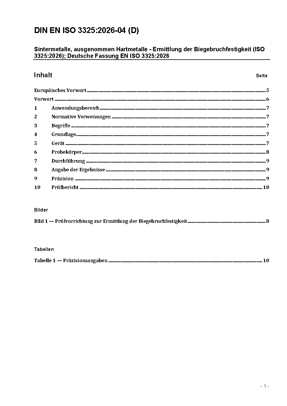 Sintermetalle, ausgenommen Hartmetalle - Ermittlung der Biegebruchfestigkeit (ISO 3325:2026); Deutsche Fassung EN ISO 3325:2026