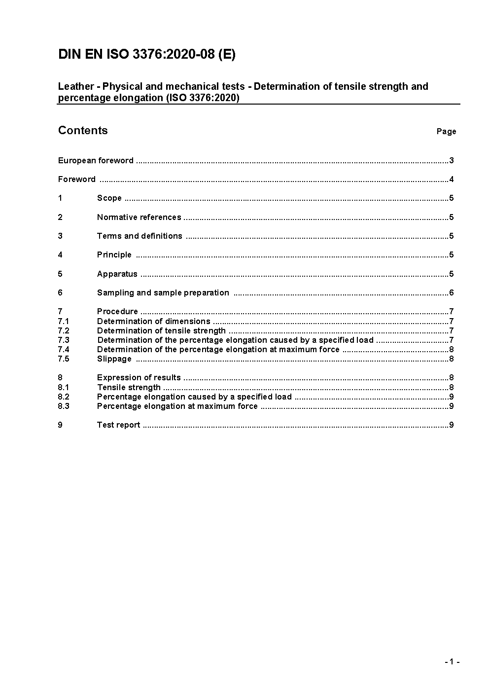 Leather - Physical and mechanical tests - Determination of tensile strength and percentage extension (ISO 3376:2011); German version EN ISO 3376:2011