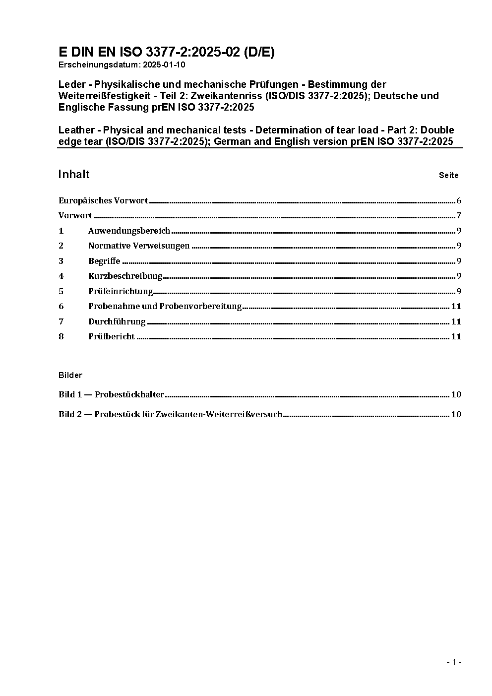 Leder - Physikalische und mechanische Prüfungen; Bestimmung der Weiterreißfestigkeit - Teil 2: Zweikantenriss (ISO 3377-2:2002); Deutsche Fassung EN ISO 3377-2:2002