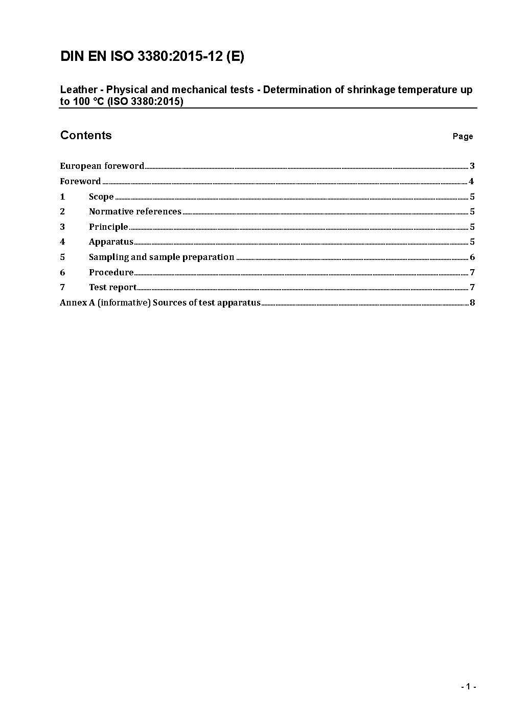 Leather - Physical and mechanical tests - Determination of shrinkage temperature up to 100 °C (ISO 3380:2002); German version EN ISO 3380:2002
