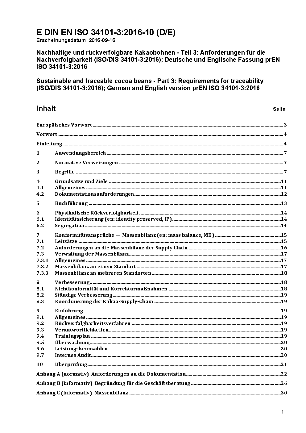 Sustainable and traceable cocoa beans - Part 3: Requirements for traceability (ISO/DIS 34101-3:2016); German and English version prEN ISO 34101-3:2016