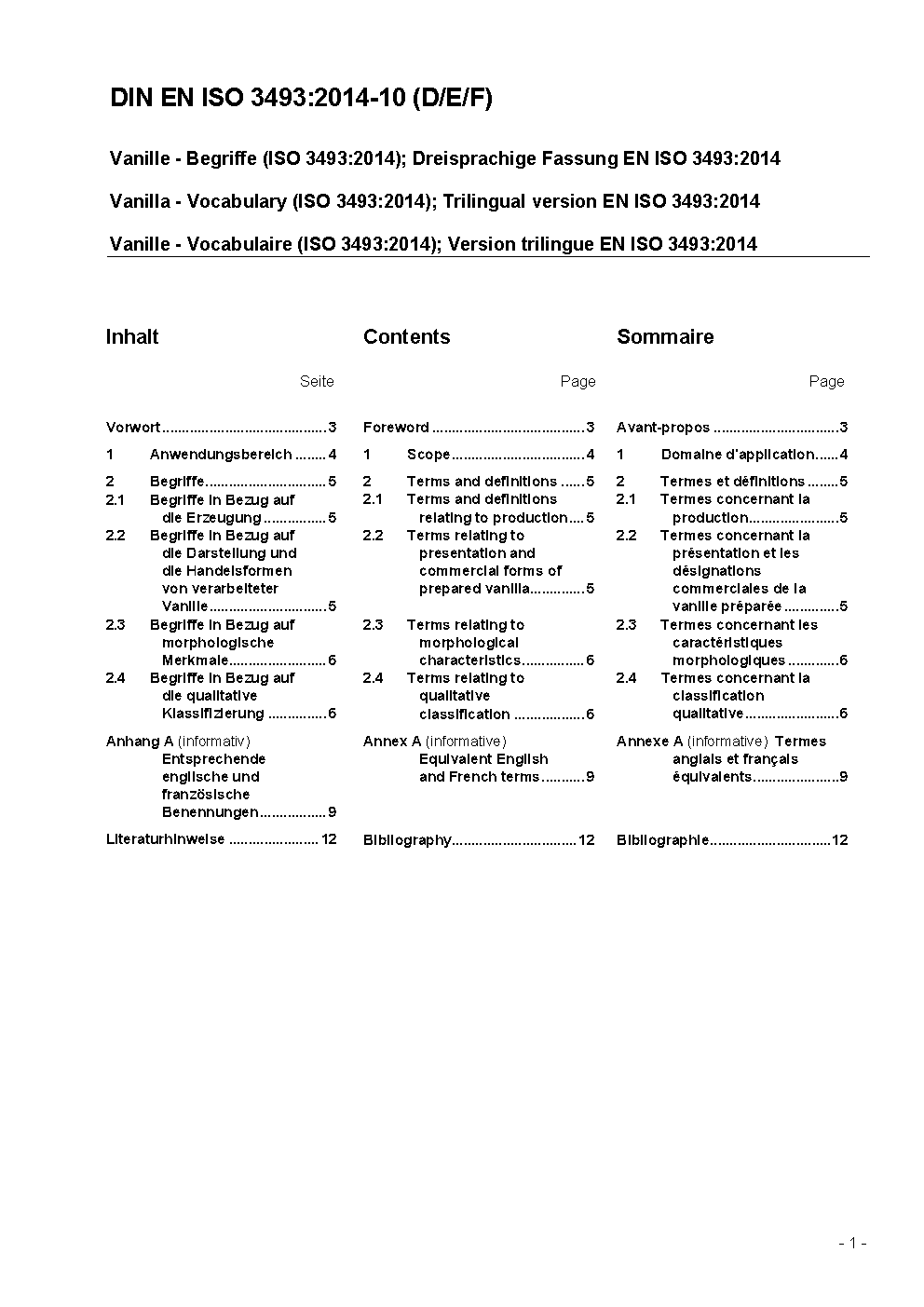 Vanille - Begriffe (ISO 3493:1999); Dreisprachige Fassung EN ISO 3493:2007