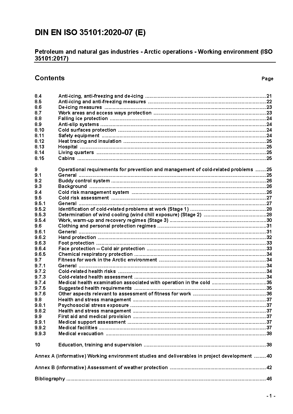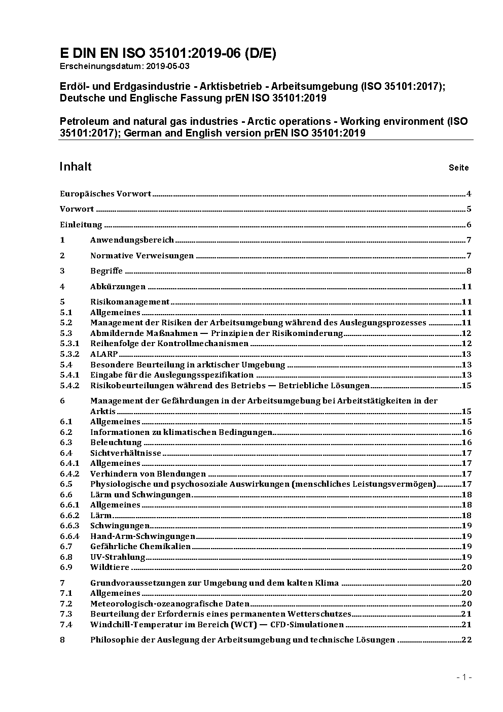 Petroleum and natural gas industries - Arctic operations - Working environment (ISO 35101:2017); German and English version prEN ISO 35101:2019
