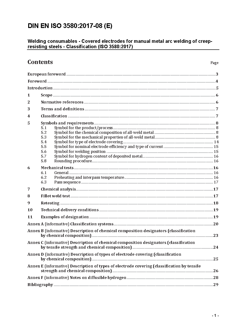 Welding consumables - Covered electrodes for manual metal arc welding of creep-resisting steels - Classification (ISO 3580:2017); German version EN ISO 3580:2017