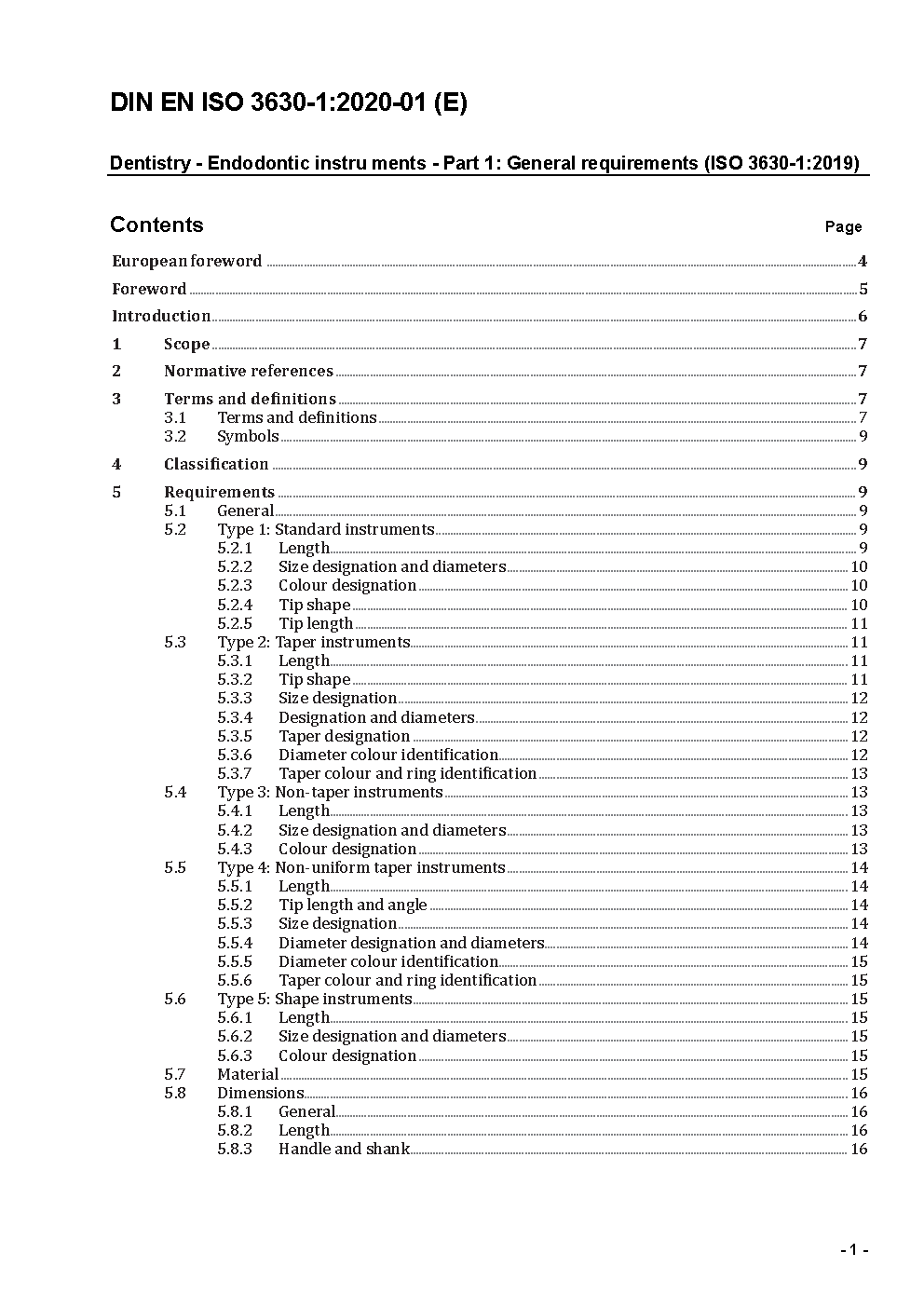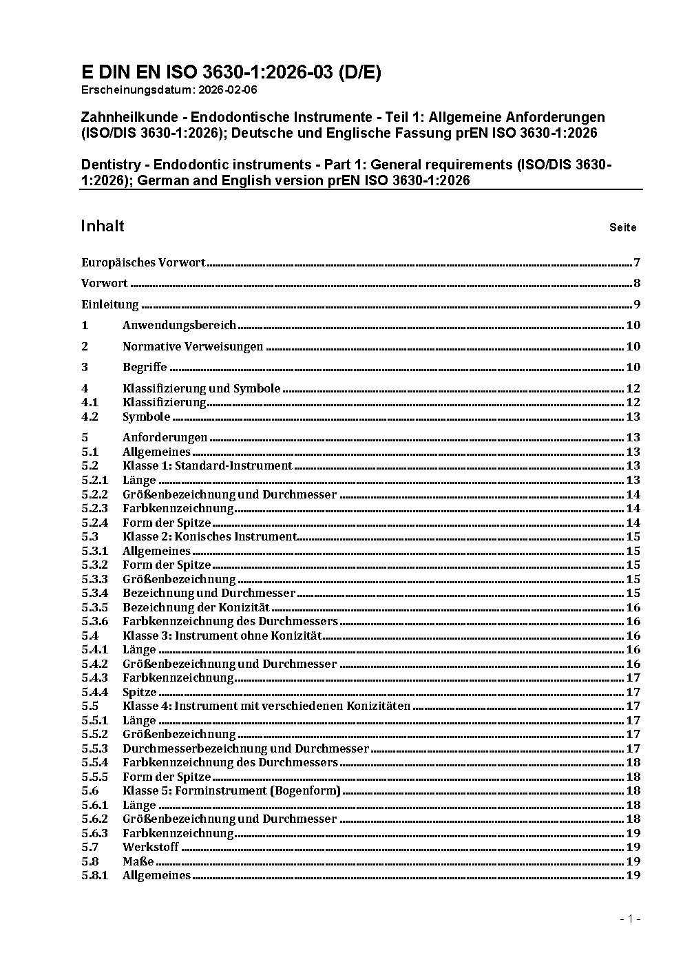 Zahnheilkunde - Wurzelkanalinstrumente - Teil 1: Allgemeine Anforderungen und Prüfverfahren (ISO 3630-1:2008); Deutsche Fassung EN ISO 3630-1:2008