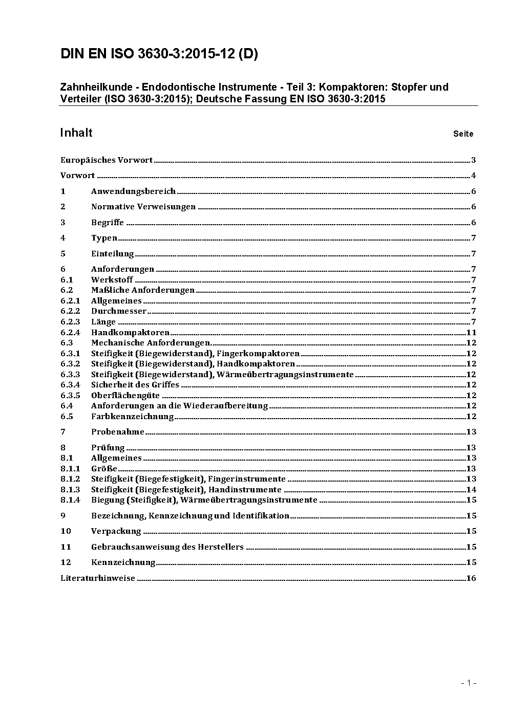 Dentistry - Endodontic instruments - Part 3: Compactors: pluggers and spreaders (ISO 3630-3:2015); German version EN ISO 3630-3:2015