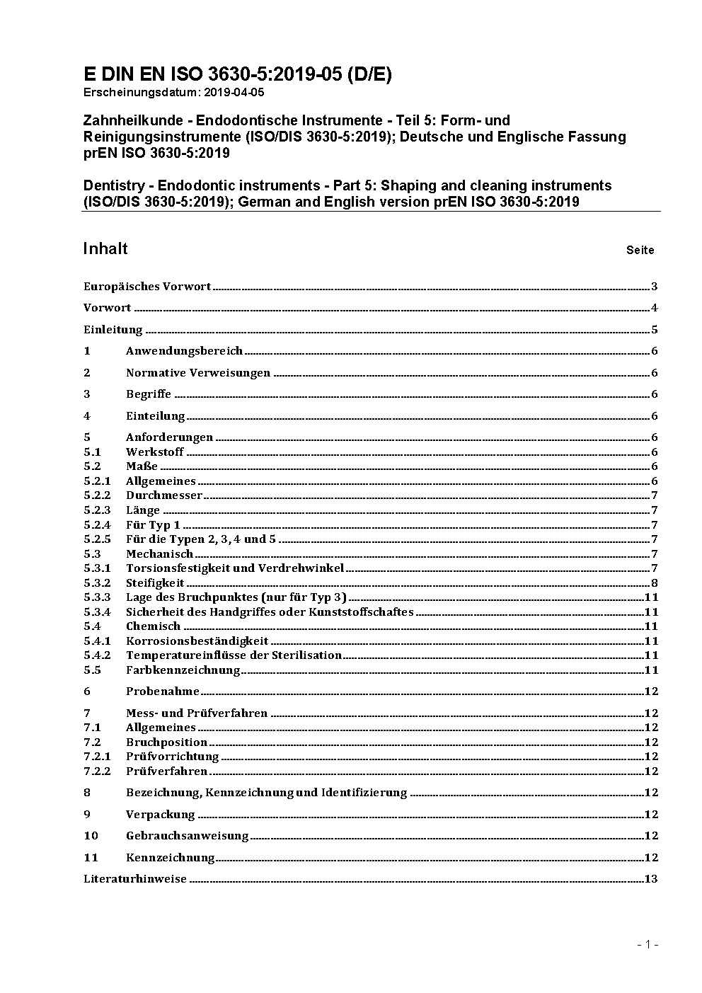 Zahnheilkunde - Endodontische Instrumente - Teil 5: Form- und Reinigungsinstrumente (ISO 3630-5:2020); Deutsche Fassung EN ISO 3630-5:2020