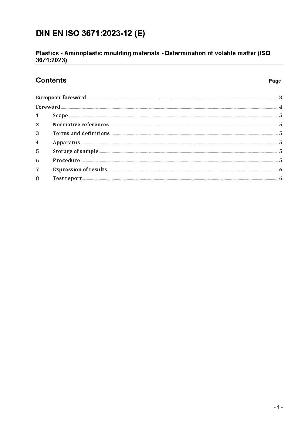 Plastics - Aminoplastic moulding materials - Determination of volatile matter (ISO/DIS 3671:2022); German and English version prEN ISO 3671:2022