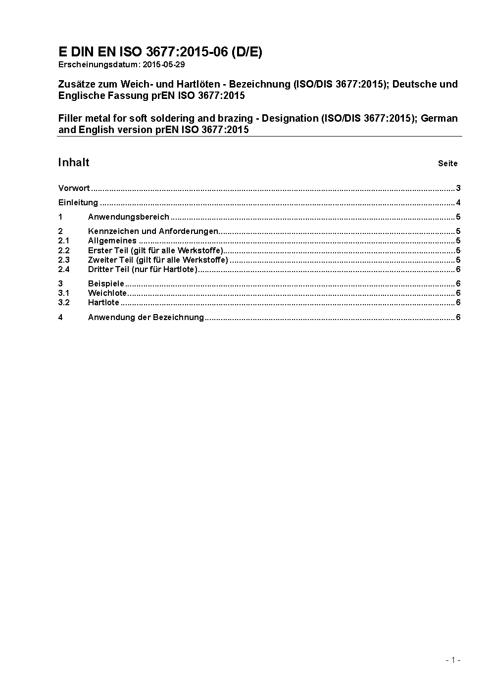 Filler metal for soft soldering, brazing and braze welding - Designation (ISO 3677:1992); German version EN ISO 3677:1995