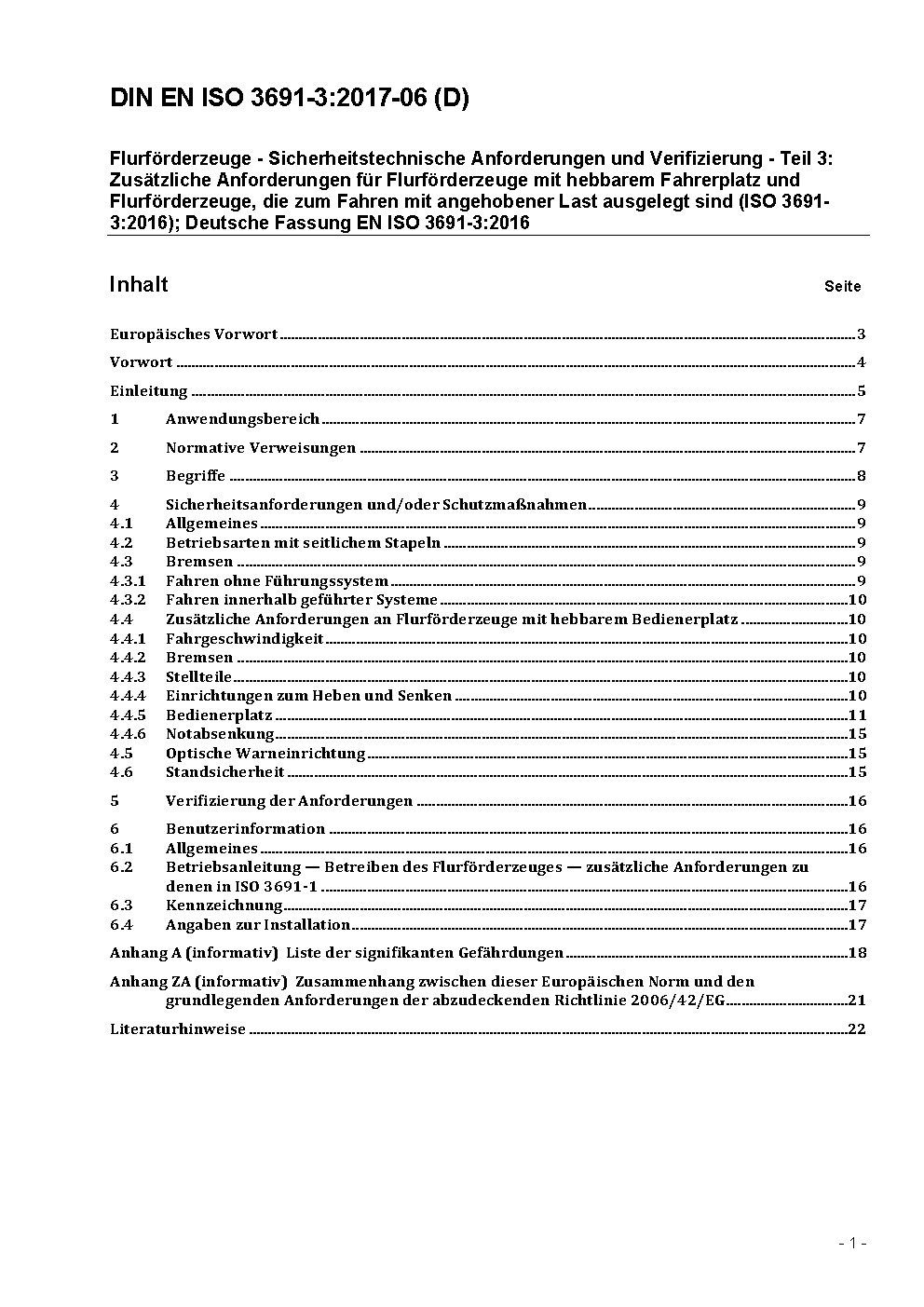 Flurförderzeuge - Sicherheitstechnische Anforderungen und Verifizierung - Teil 3: Zusätzliche Anforderungen für Flurförderzeuge mit hebbarem Fahrerplatz und Flurförderzeuge, die zum Fahren mit angehobener Last ausgelegt sind (ISO 3691-3:2016/DAM 1:2021); Deutsche und Englische Fassung EN ISO 3691-3:2016/prA1:2021