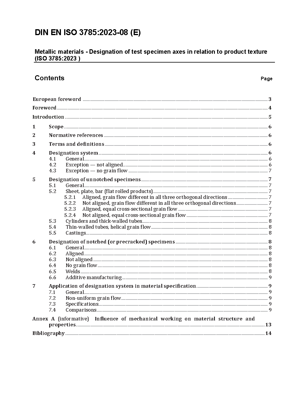 Metallic materials - Designation of test specimen axes in relation to product texture (ISO 3785:2006); German version EN ISO 3785:2006