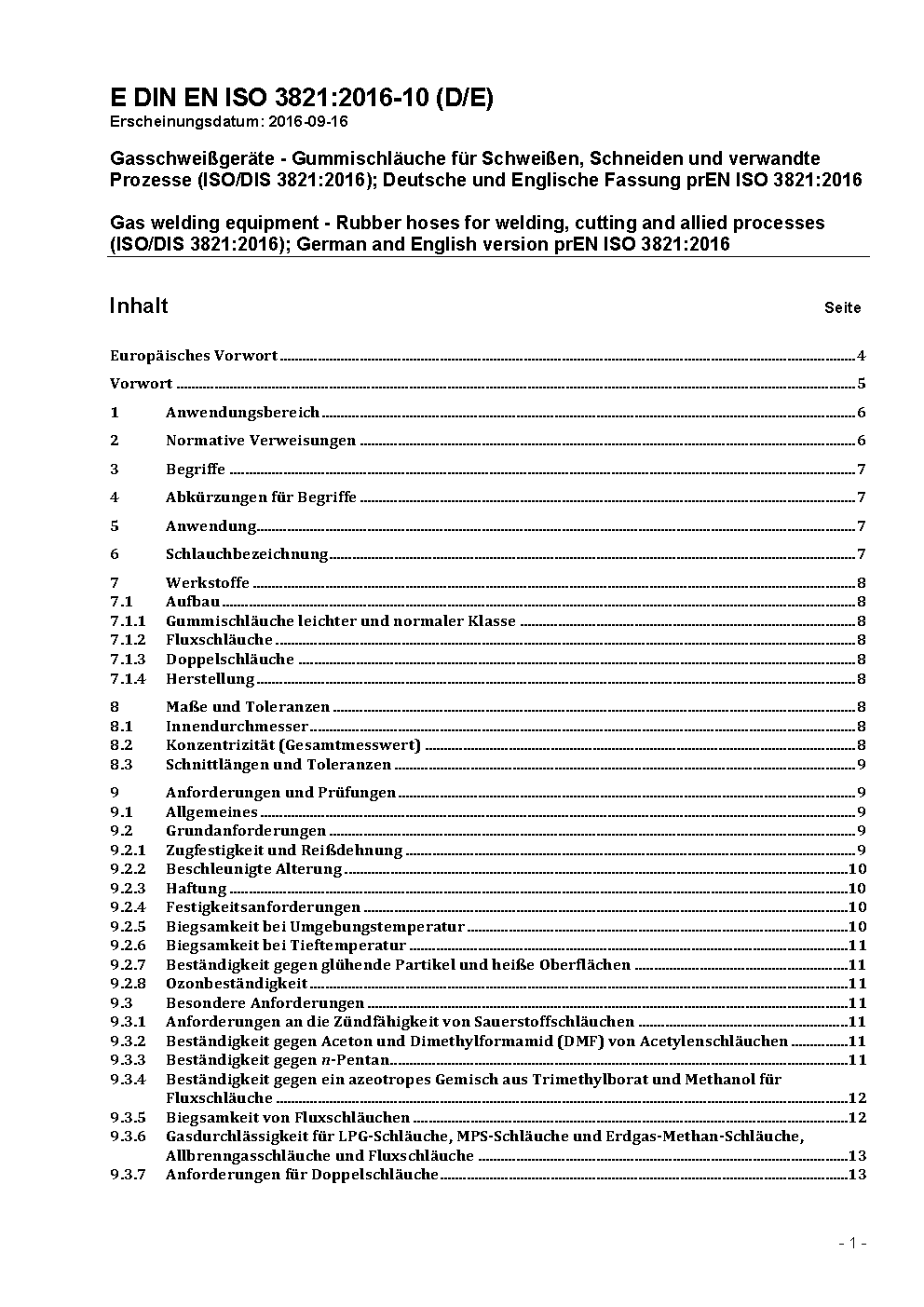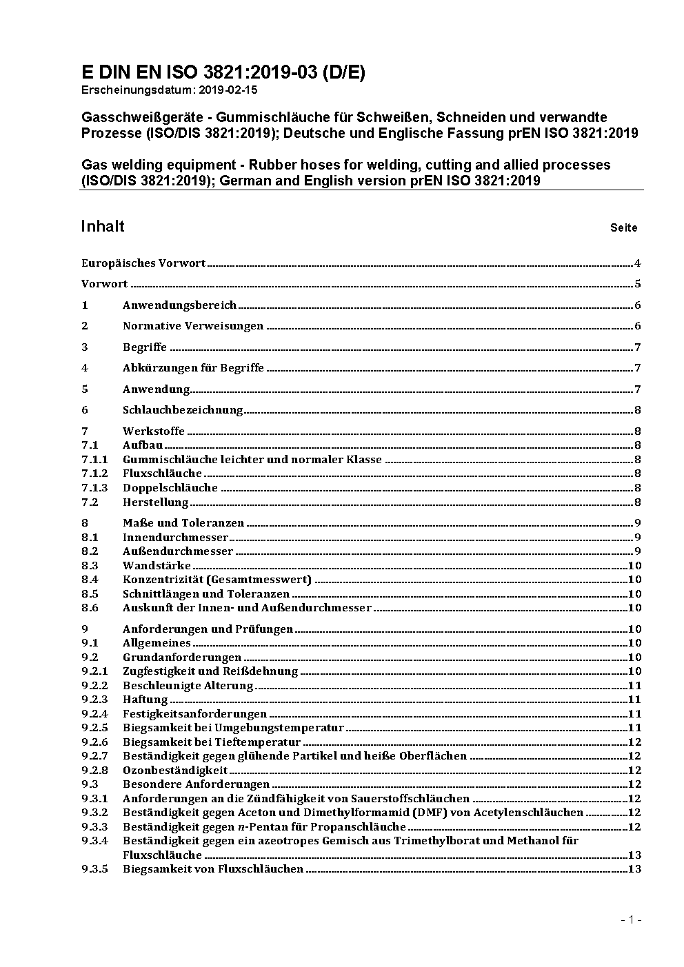 Gasschweißgeräte - Gummischläuche für Schweißen, Schneiden und verwandte Prozesse (ISO/DIS 3821:2019); Deutsche und Englische Fassung prEN ISO 3821:2019
