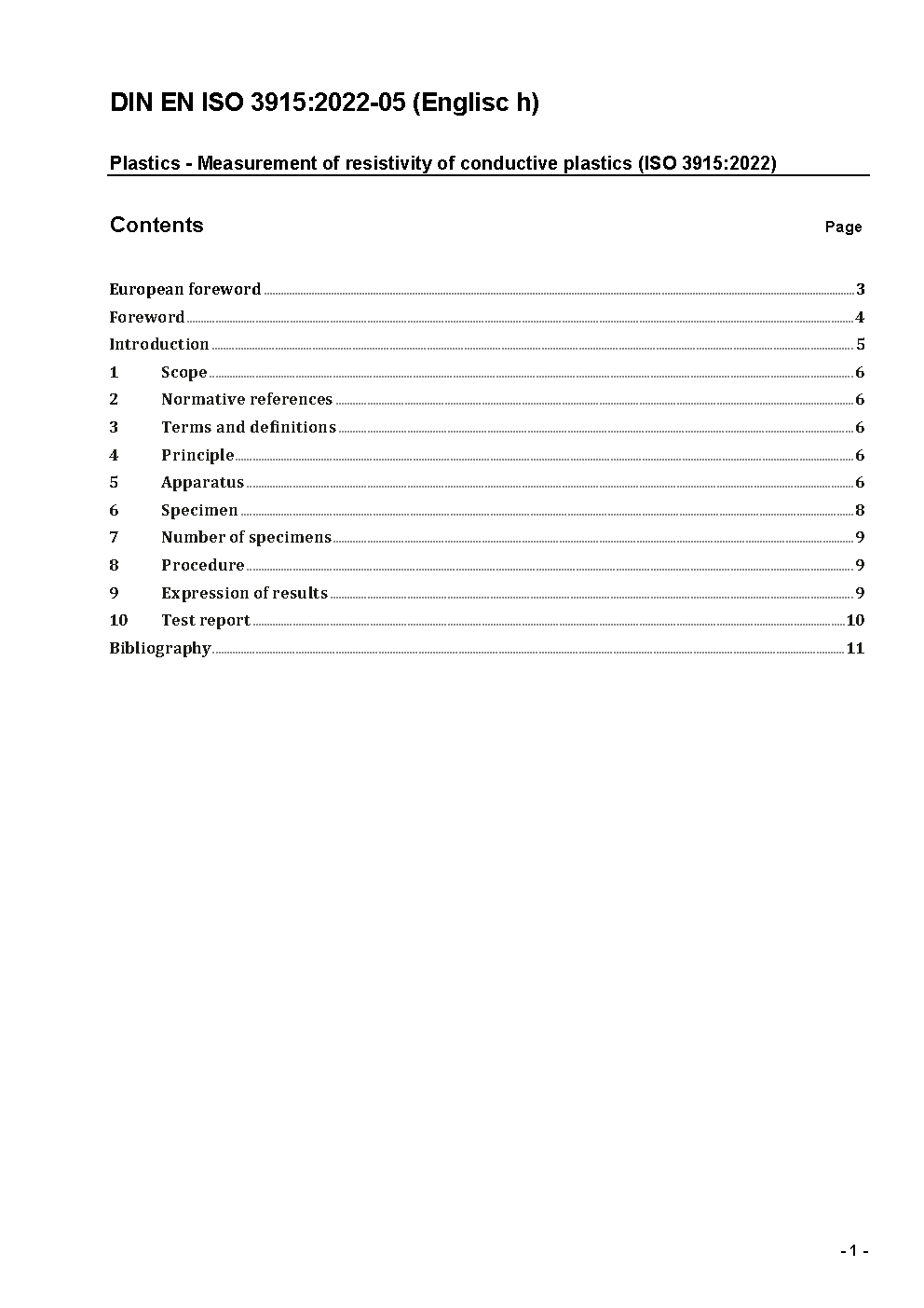 Kunststoffe - Messung des spezifischen elektrischen Widerstandes von leitfähigen Kunststoffen (ISO 3915:1981); Deutsche Fassung EN ISO 3915:1999