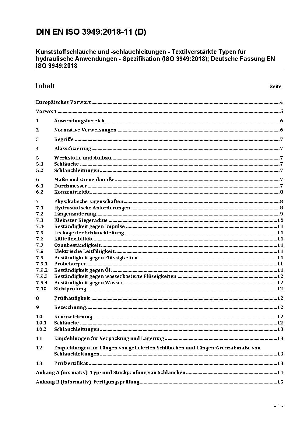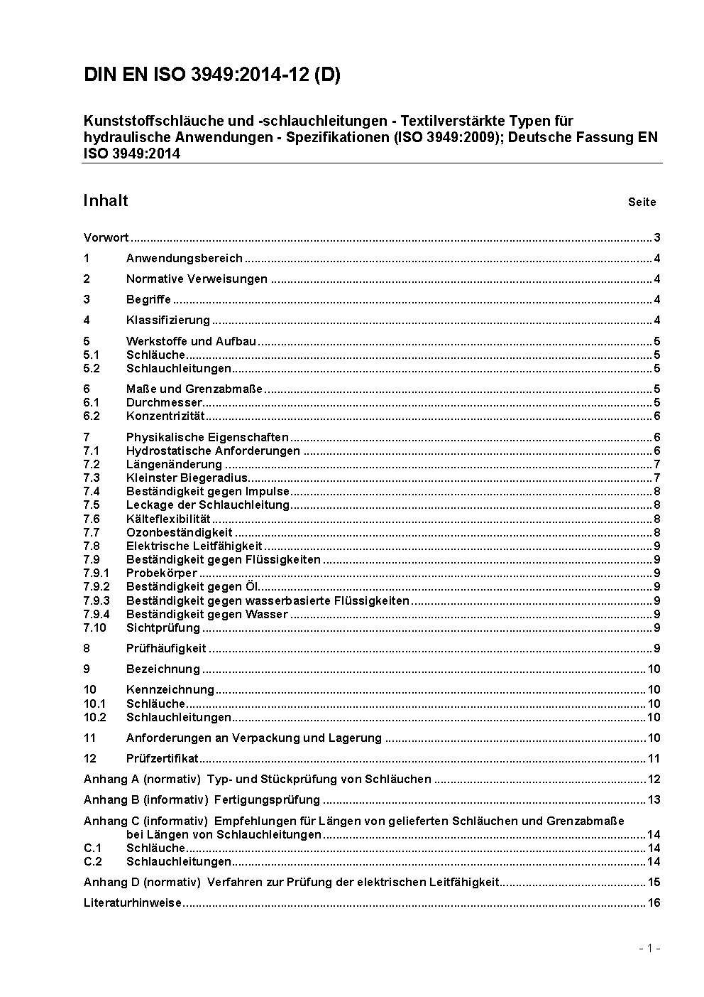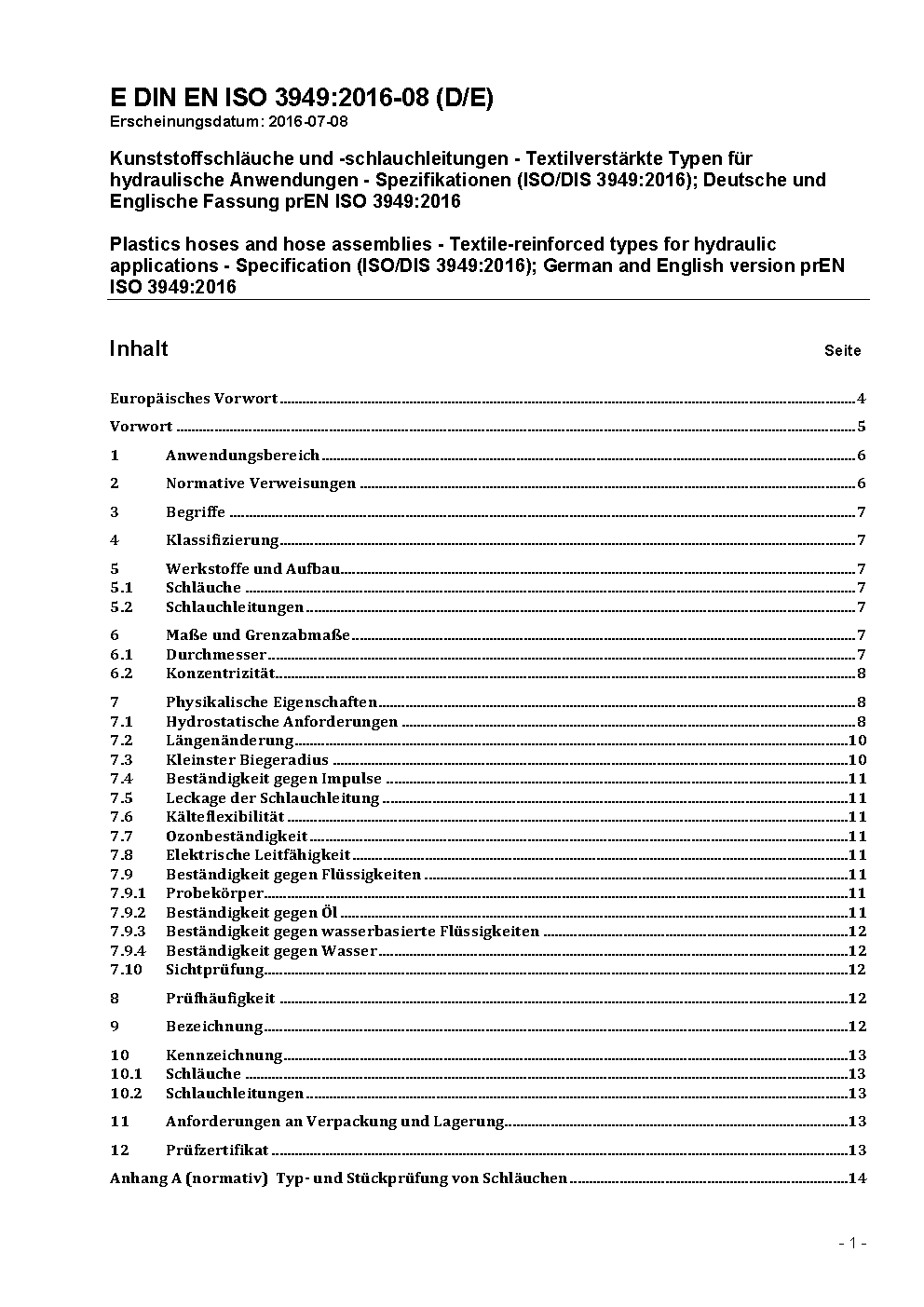 Plastics hoses and hose assemblies - Textile-reinforced types for hydraulic applications - Specification (ISO 3949:2009); German version EN ISO 3949:2014
