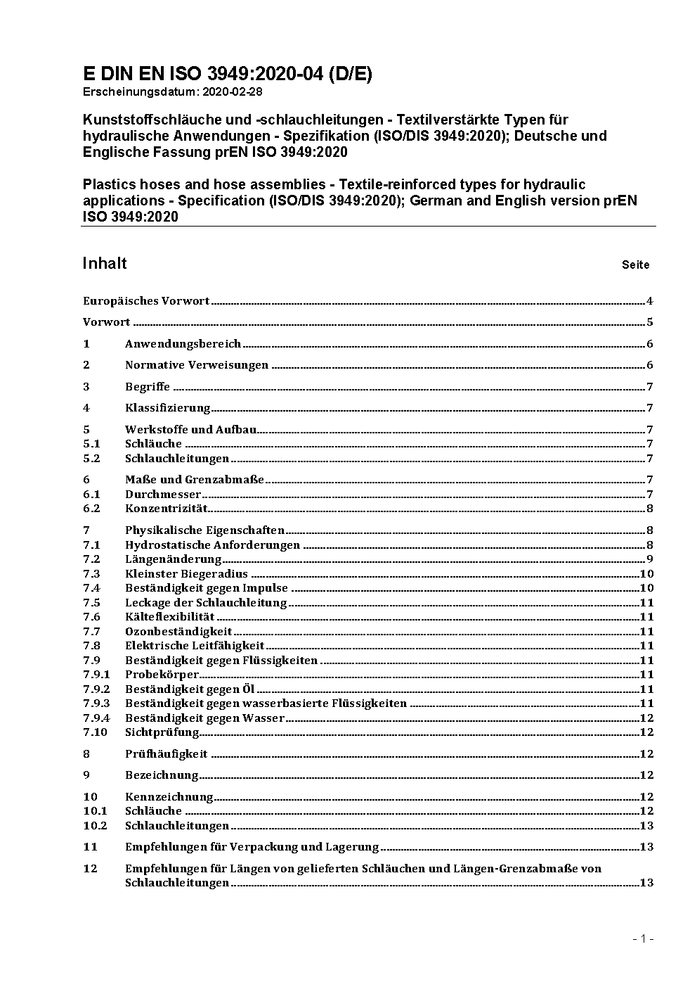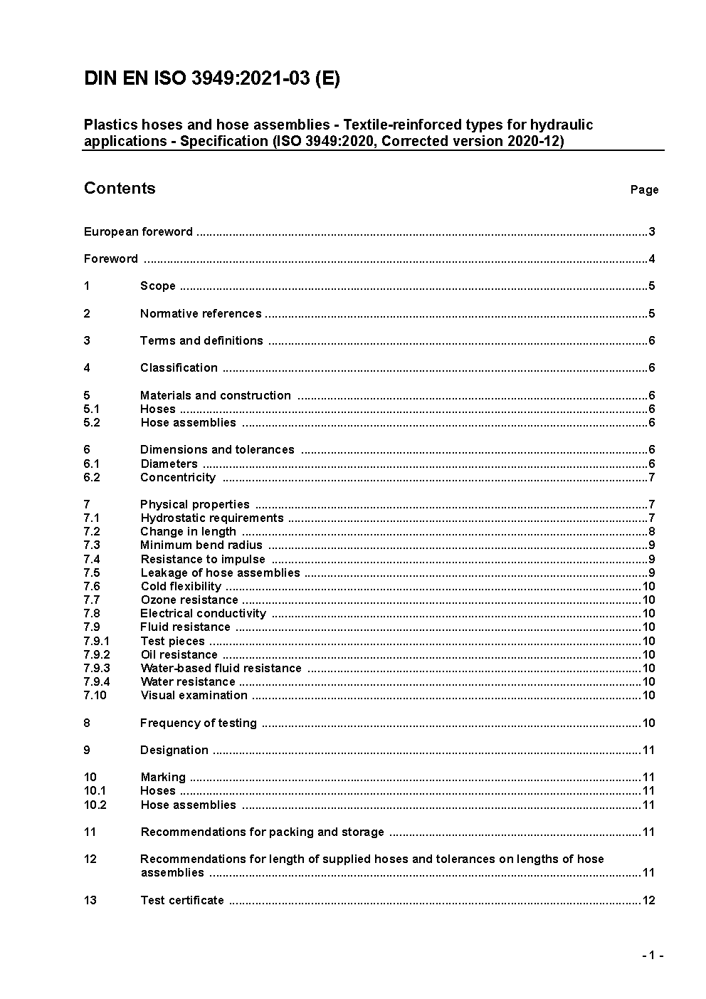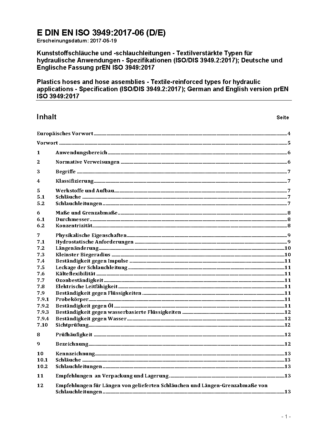 Plastics hoses and hose assemblies - Textile-reinforced types for hydraulic applications - Specification (ISO 3949:2009); German version EN ISO 3949:2014