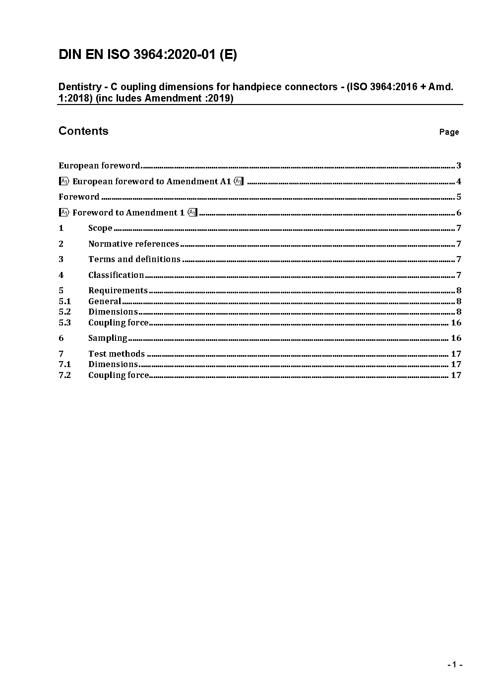 Dentistry - Coupling dimensions for handpiece connectors - AMENDMENT 1 (ISO 3964:2016/DAM 1:2018); German and English version EN ISO 3964:2016/prA1:2019