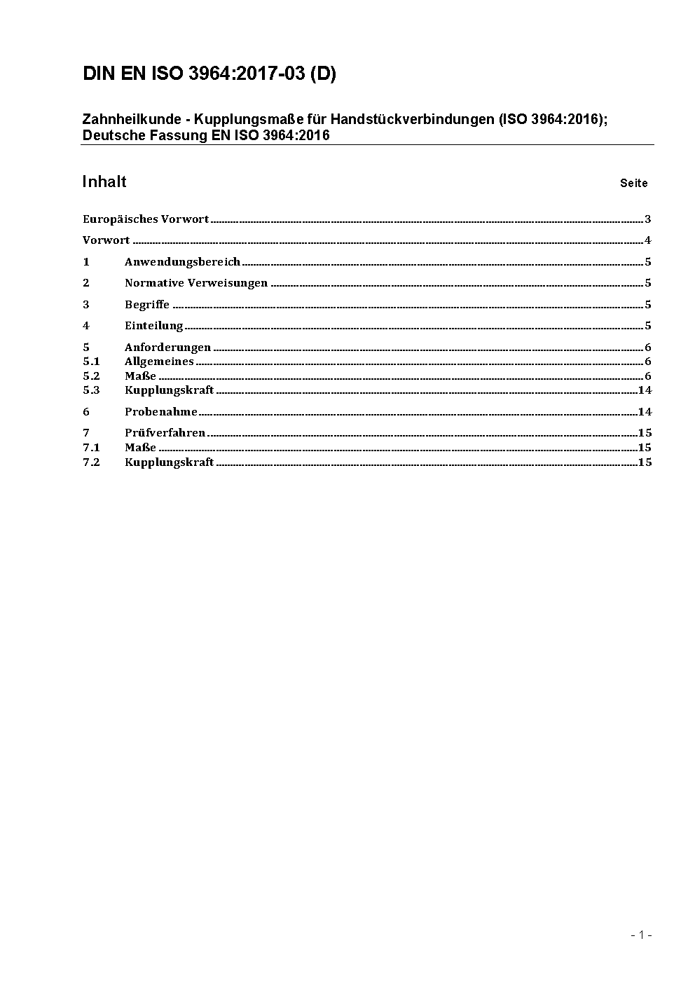 Zahnheilkunde - Kupplungsmaße für Handstückverbindungen - Änderung 1 (ISO 3964:2016/DAM 1:2018); Deutsche und Englische Fassung EN ISO 3964:2016/prA1:2019