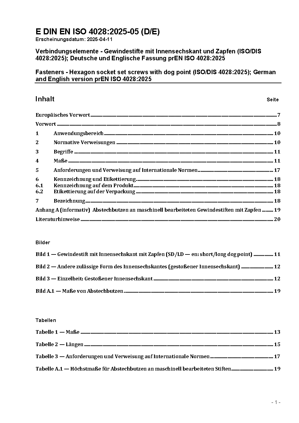 Hexagon socket set screws with dog point (ISO 4028:2003); German version EN ISO 4028:2003