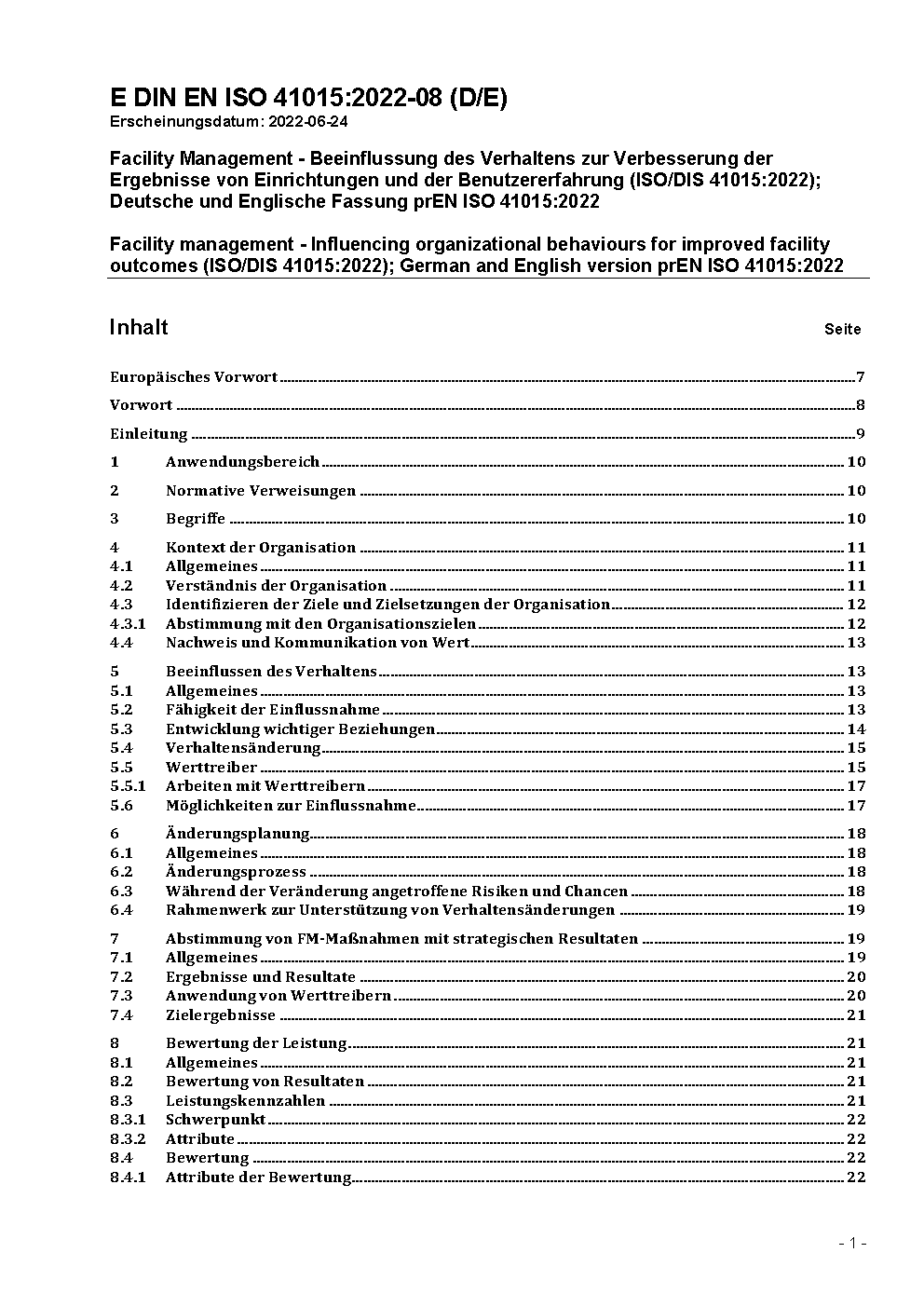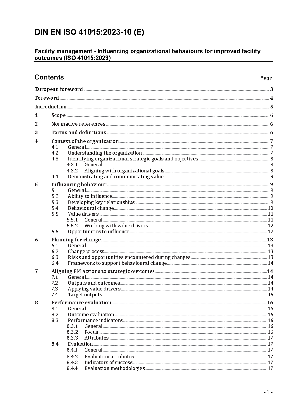 Facility management - Influencing organizational behaviours for improved facility outcomes (ISO 41015:2023); German version EN ISO 41015:2023