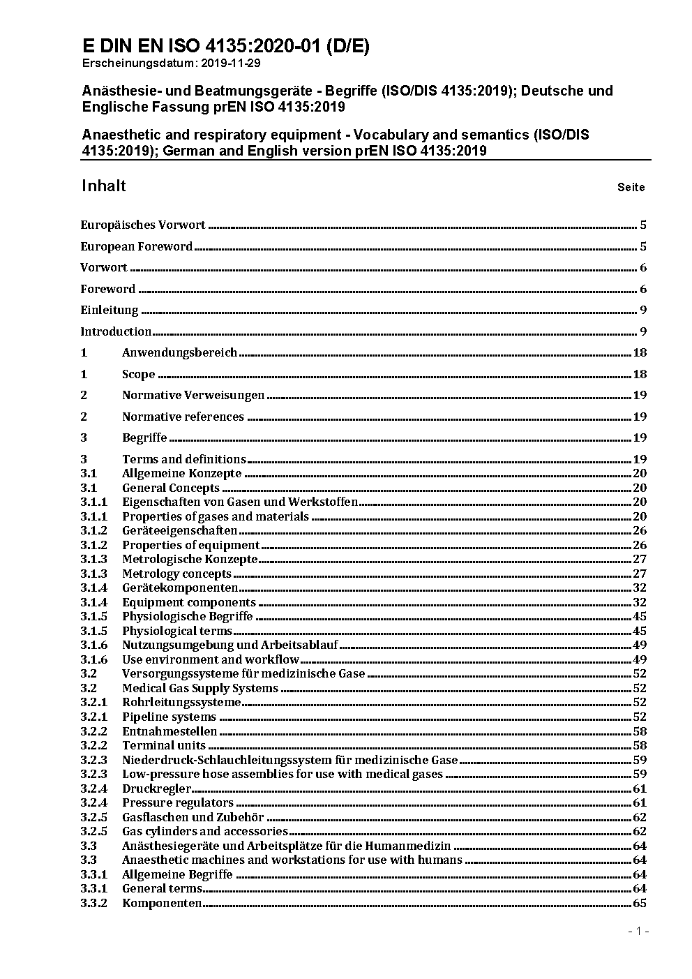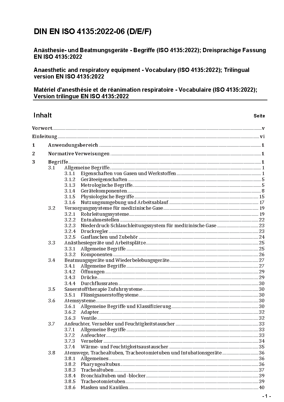 Anaesthetic and respiratory equipment - Vocabulary (ISO 4135:2001); Trilingual version EN ISO 4135:2001