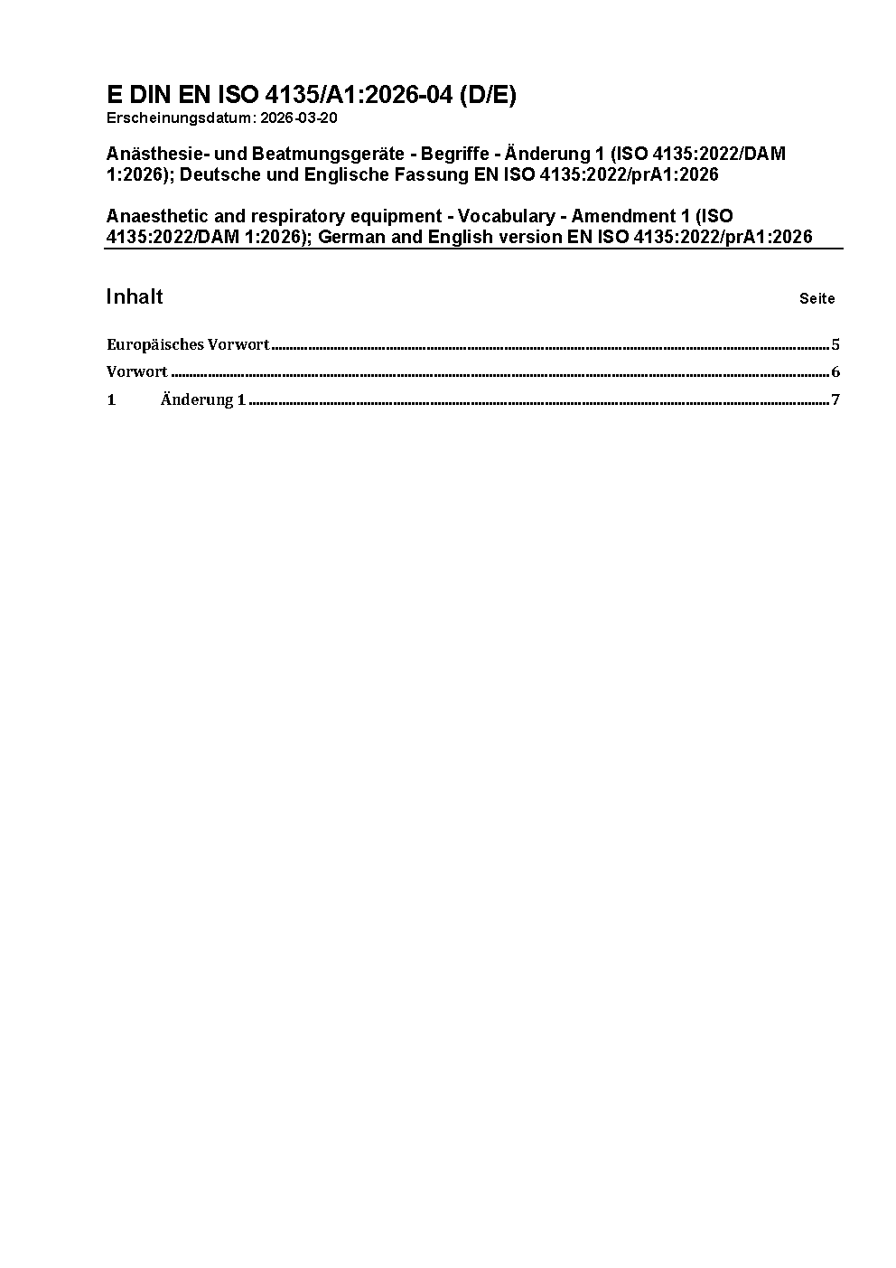 Anästhesie- und Beatmungsgeräte - Begriffe (ISO 4135:2001); Dreisprachige Fassung EN ISO 4135:2001