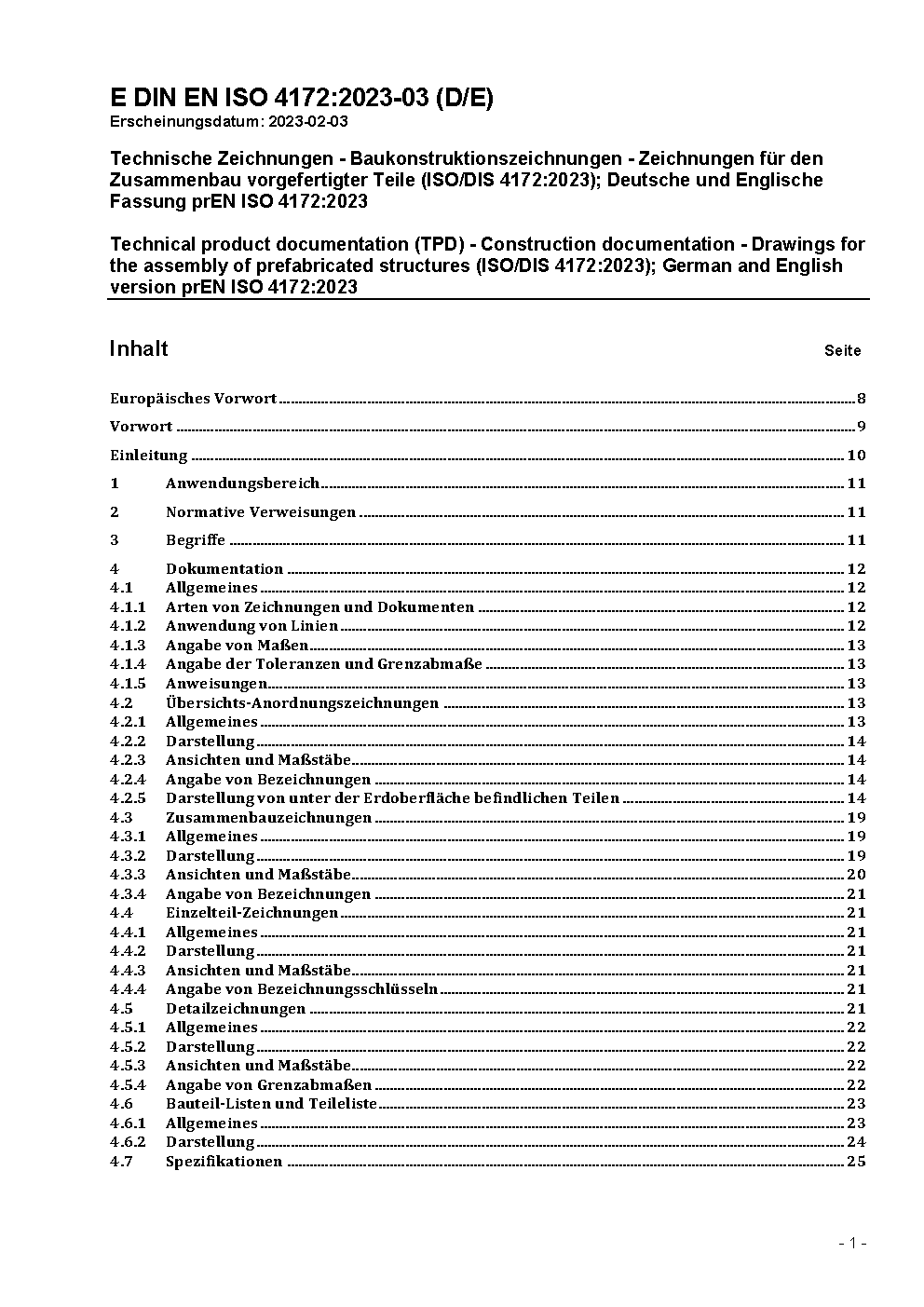 Technical product documentation (TPD) - Construction documentation - Drawings for the assembly of prefabricated structures (ISO 4172:2024); German version EN ISO 4172:2024