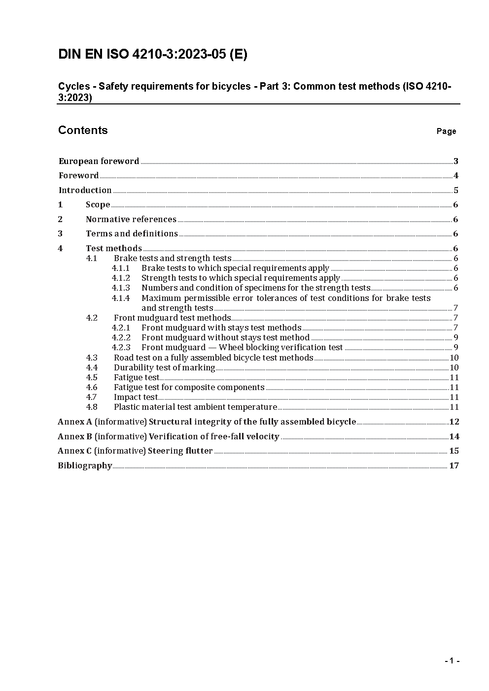 Cycles - Safety requirements for bicycles - Part 3: Common test methods (ISO 4210-3:2014); German version EN ISO 4210-3:2014.