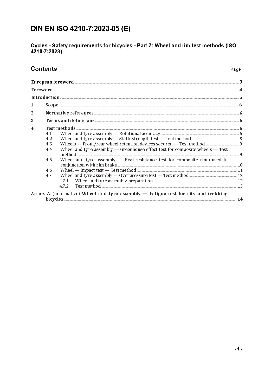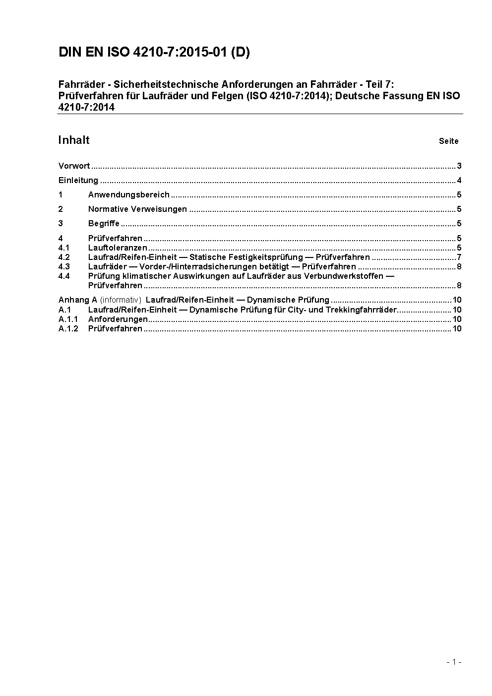 Fahrräder - Sicherheitstechnische Anforderungen an Fahrräder - Teil 7: Prüfverfahren für Laufräder und Felgen; Deutsche Fassung prEN ISO 4210-7:2012