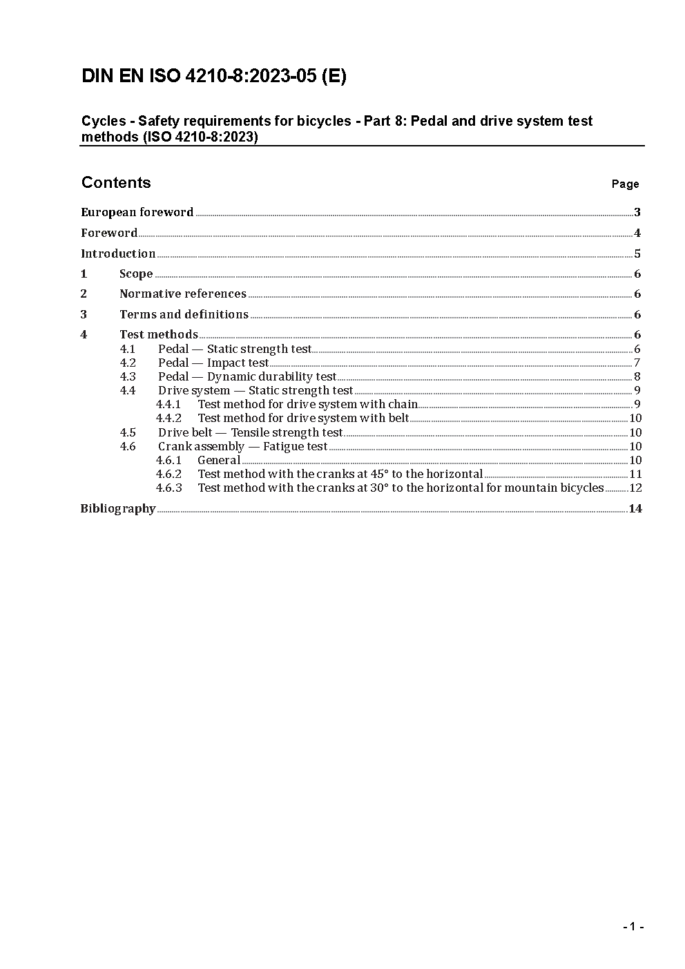 Cycles - Safety requirements for bicycles - Part 8: Pedal and drive system test methods (ISO 4210-8:2014); German version EN ISO 4210-8:2014.