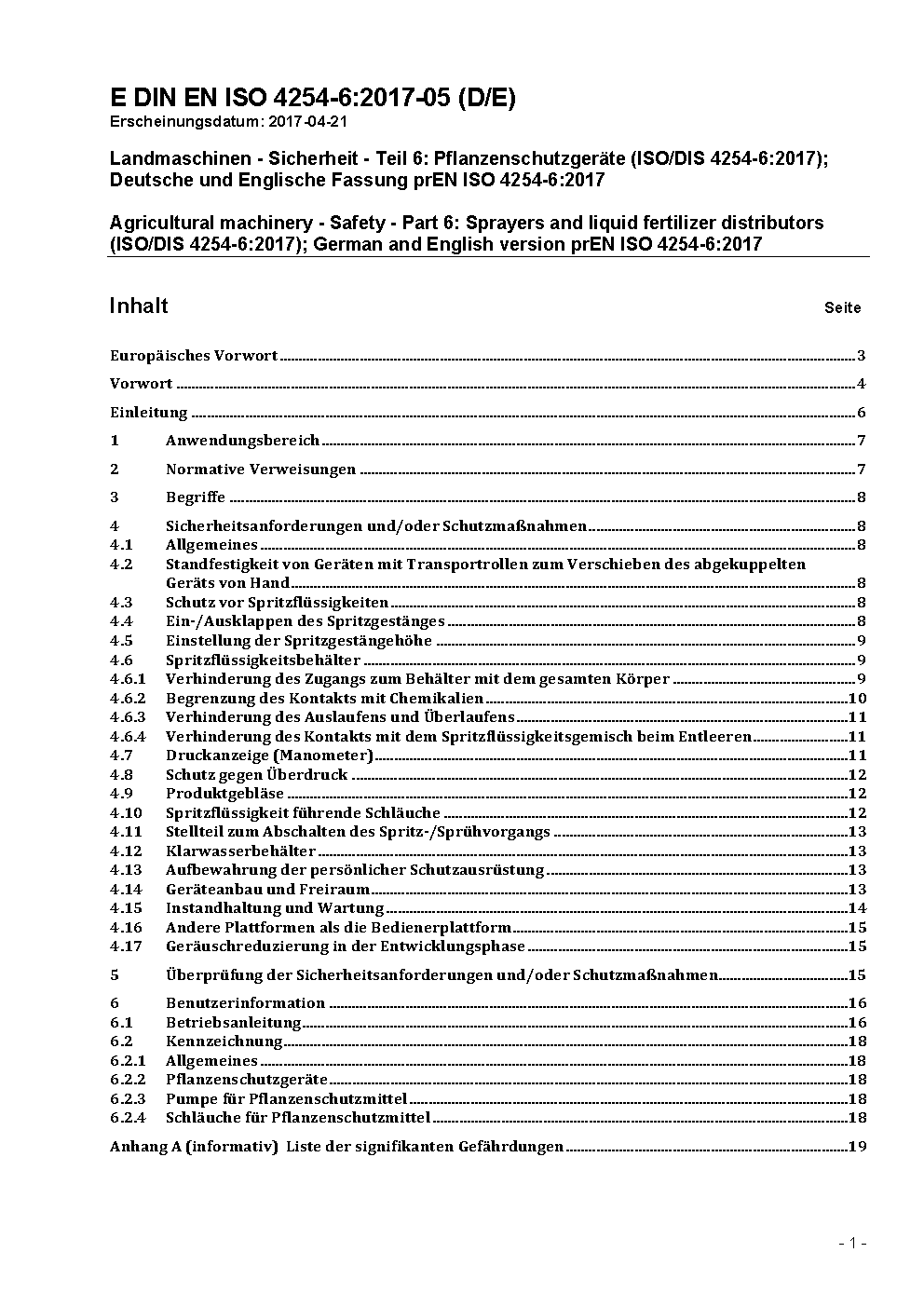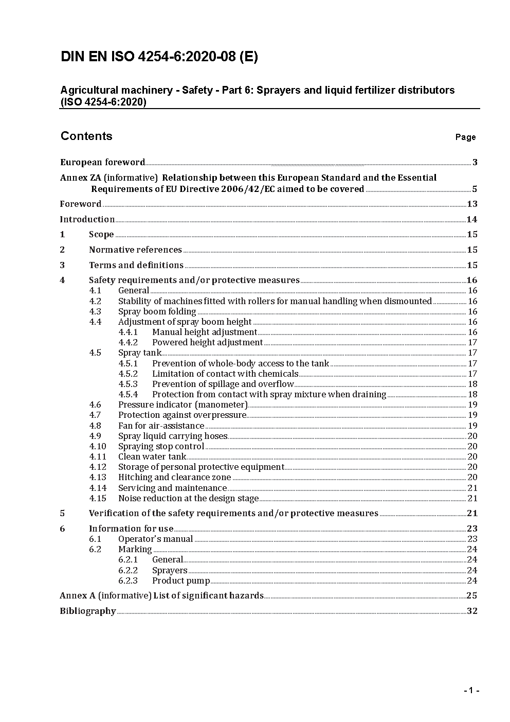 Agricultural machinery - Safety - Part 6: Sprayers and liquid fertilizer distributors (ISO 4254-6:2020); German version EN ISO 4254-6:2020