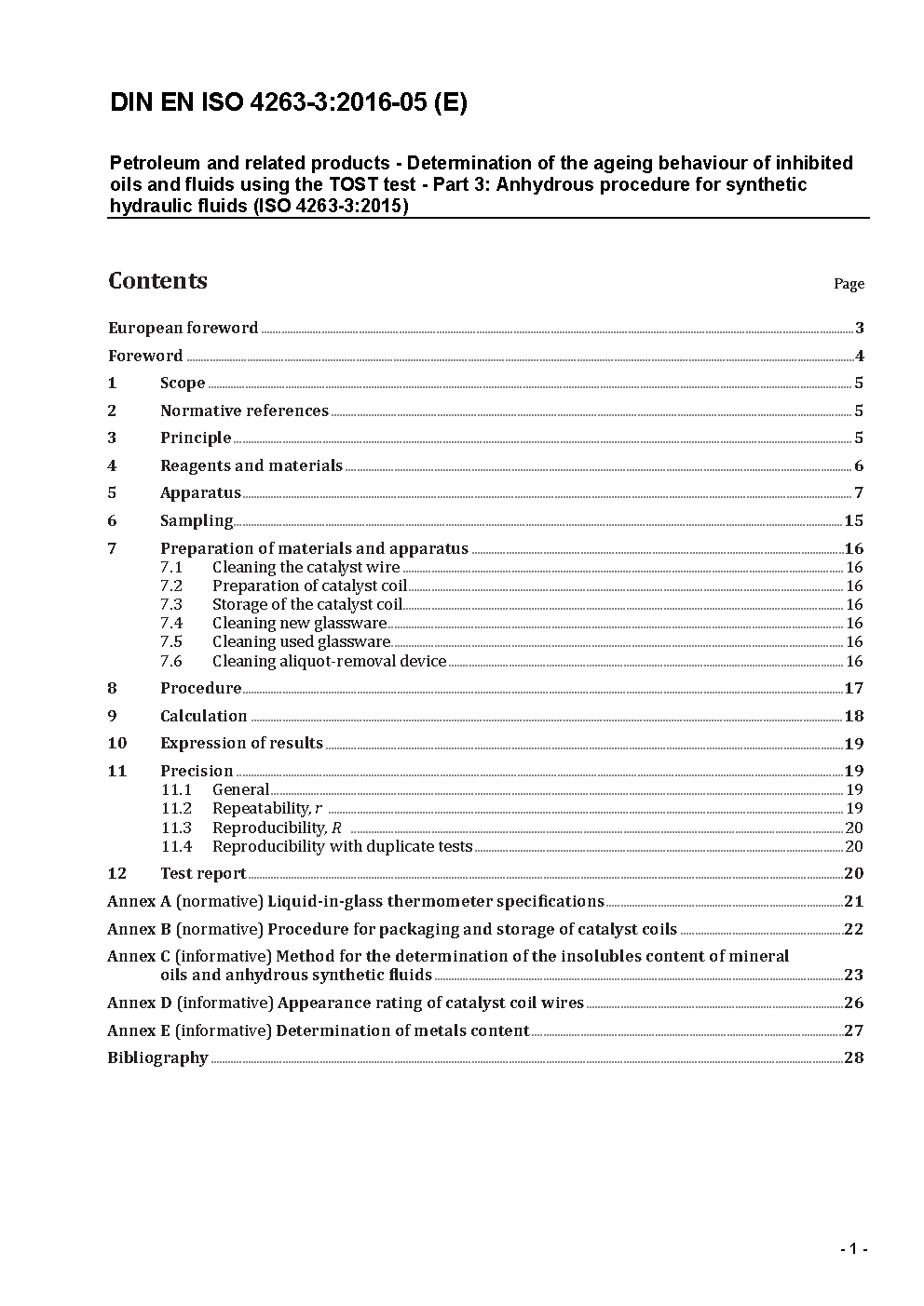 Mineralölerzeugnisse und verwandte Produkte - Bestimmung des Alterungsverhaltens von inhibierten Ölen und Flüssigkeiten - TOST-Verfahren - Teil 3: Wasserfreies Verfahren für synthetische Druckflüssigkeiten (ISO 4263-3:2006); Deutsche Fassung EN ISO 4263-3:2006