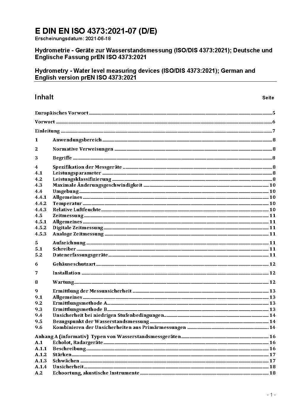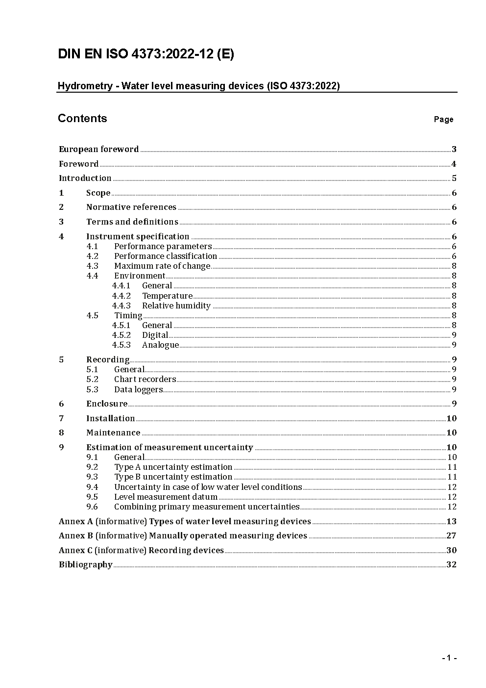 Hydrometrie - Geräte zur Wasserstandsmessung (ISO 4373:2022); Deutsche Fassung EN ISO 4373:2022