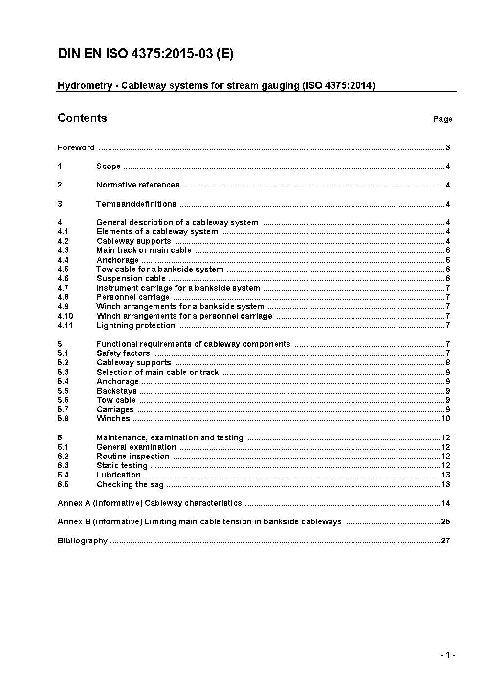 Hydrometric determinations - Cableway systems for stream gauging (ISO 4375:2000); German version EN ISO 4375:2004