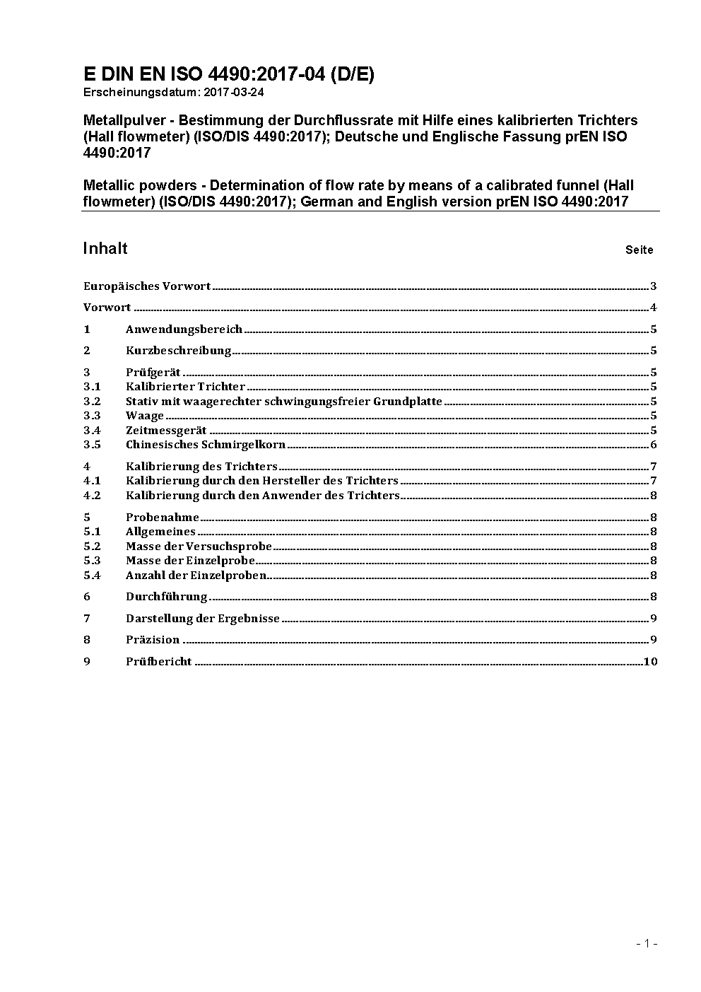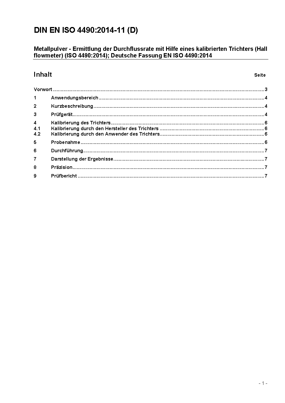 Metallic powders - Determination of flow rate by means of a calibrated funnel (Hall flowmeter) (ISO 4490:2008); German version EN ISO 4490:2008