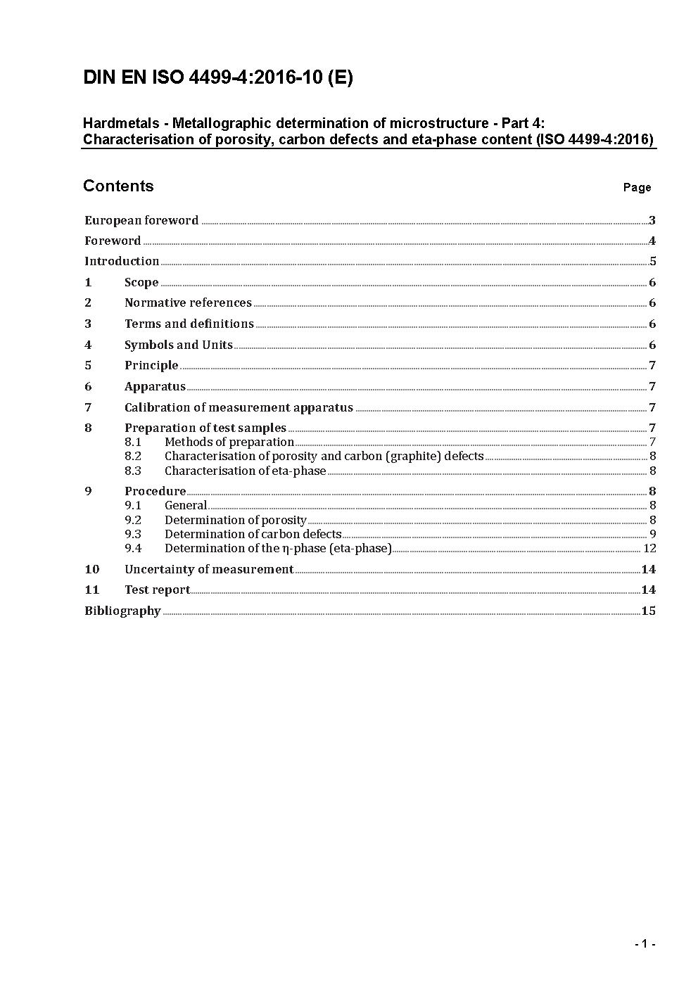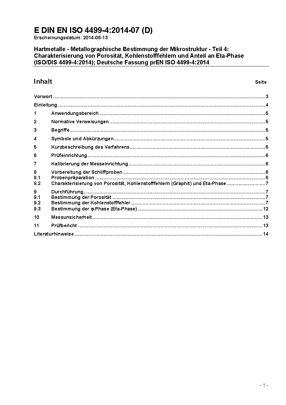 Hardmetals - Metallographic determination of microstructure - Part 4: Characterisation of Porosity, Carbon Defects and Eta-phase content (ISO/DIS 4499-4:2014); German version prEN ISO 4499-4:2014