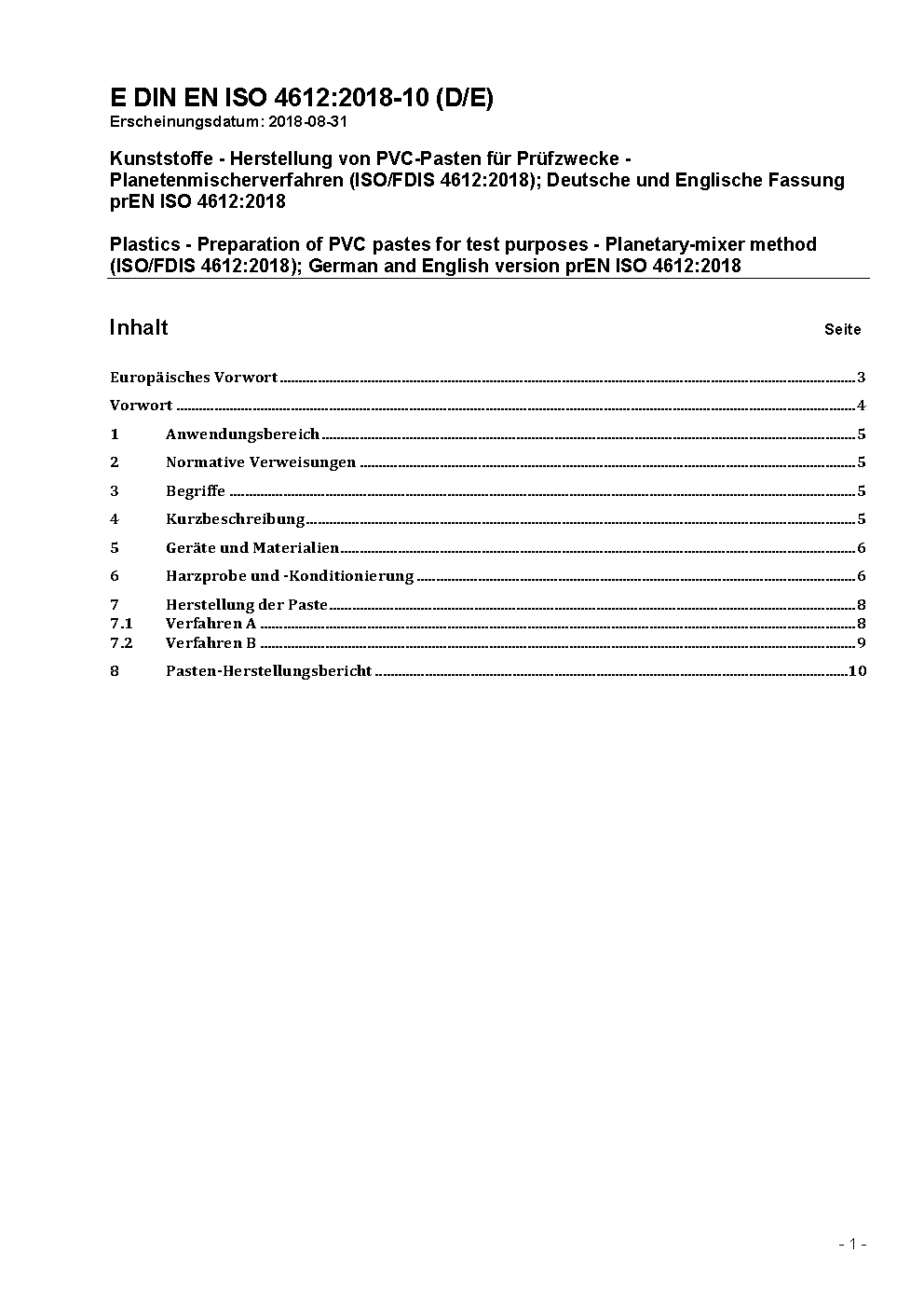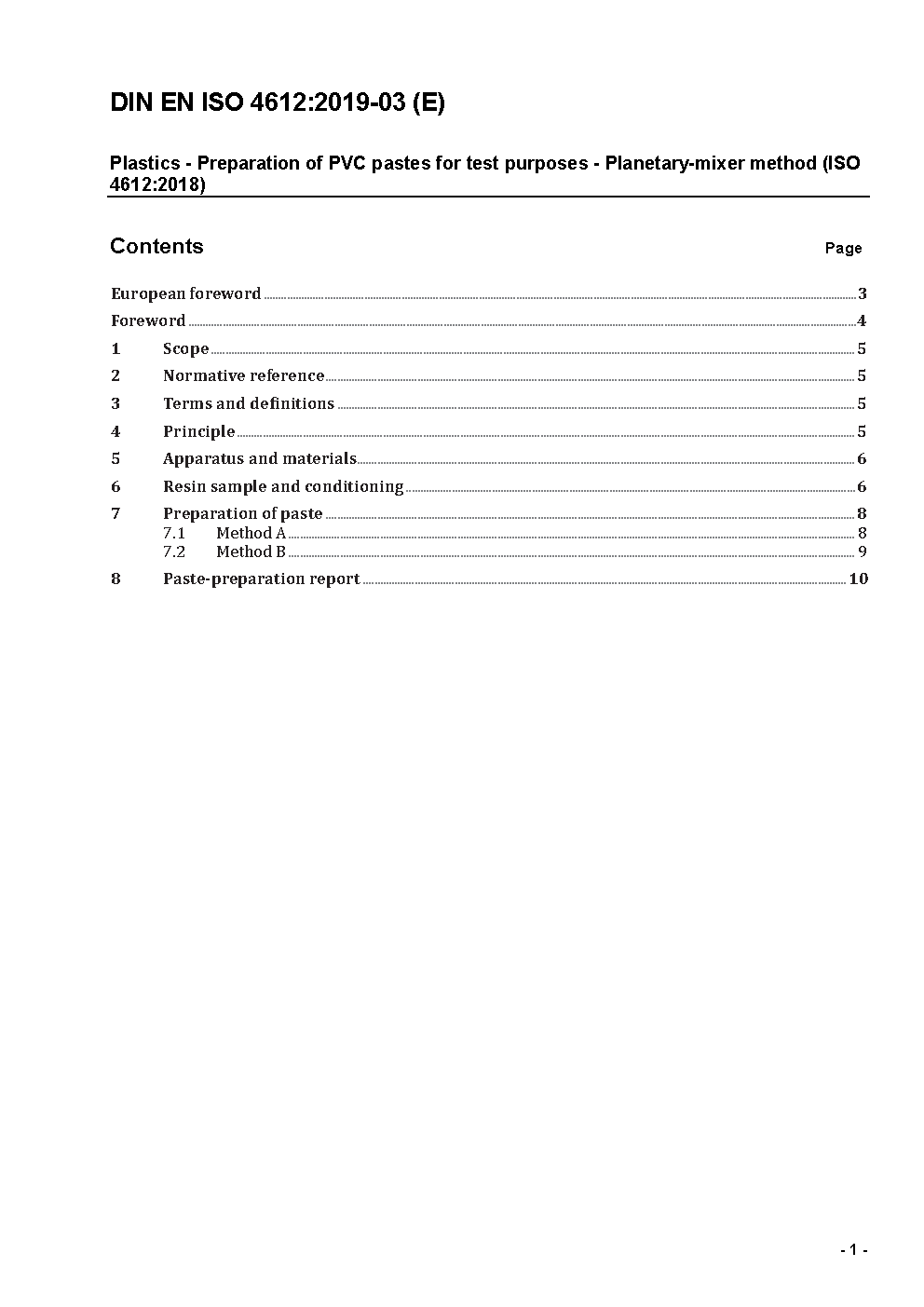 Kunststoffe - Herstellung von PVC-Pasten für Prüfzwecke - Planetenmischerverfahren (ISO 4612:1999); Deutsche Fassung EN ISO 4612:1999