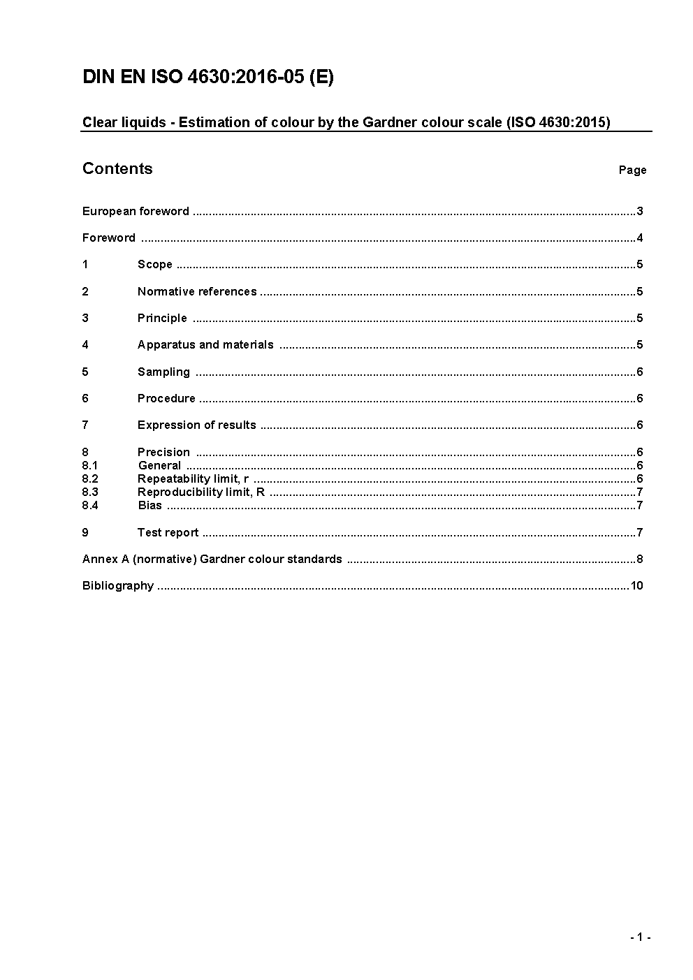 Clear liquids - Estimation of colour by the Gardner colour scale (ISO/DIS 4630:2014); German version prEN ISO 4630:2014