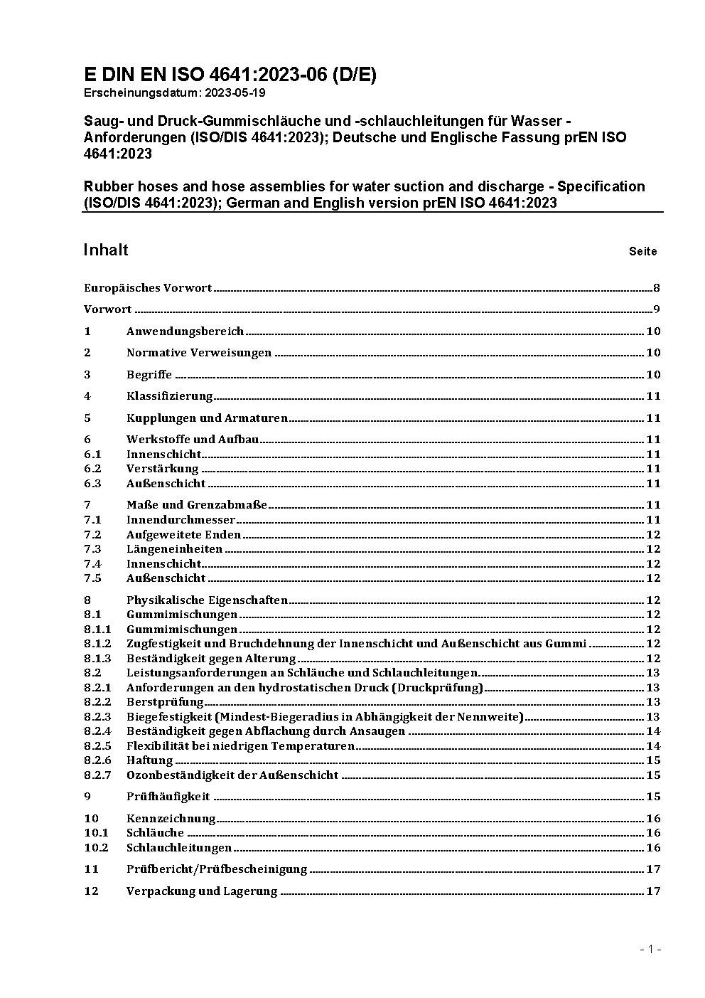 Rubber hoses and hose assemblies for water suction and discharge - Specification (ISO/DIS 4641:2023); German and English version prEN ISO 4641:2023