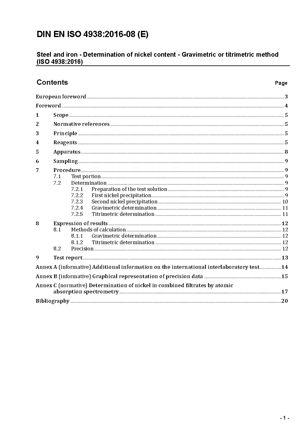 Steel and iron - Determination of nickel content - Gravimetric or titrimetric method (ISO 4938:2016); German version EN ISO 4938:2016