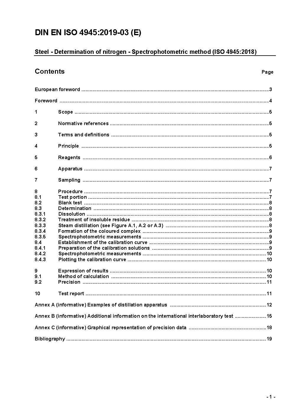 Steel - Determination of nitrogen content - Spectrophotometric method (ISO 4945:1977); German version EN ISO 4945:2009