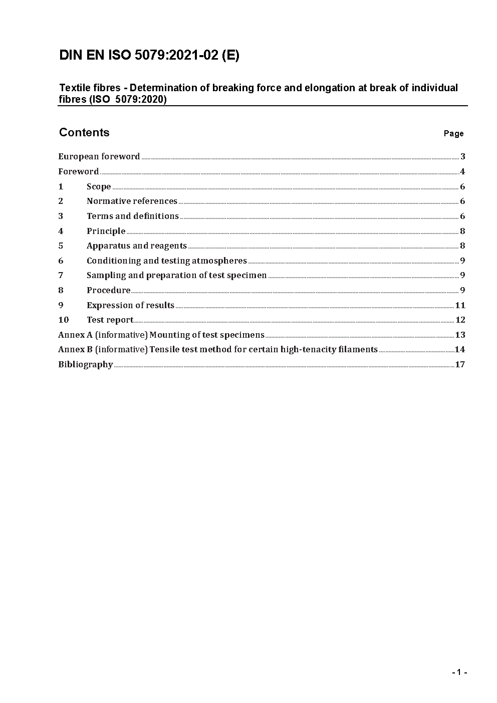 Textiles - Fibres - Determination of breaking force and elongation at break of individual fibres (ISO 5079:1979); German version EN ISO 5079:1995
