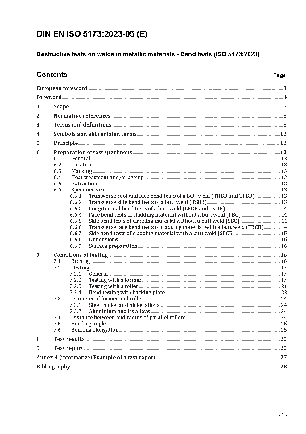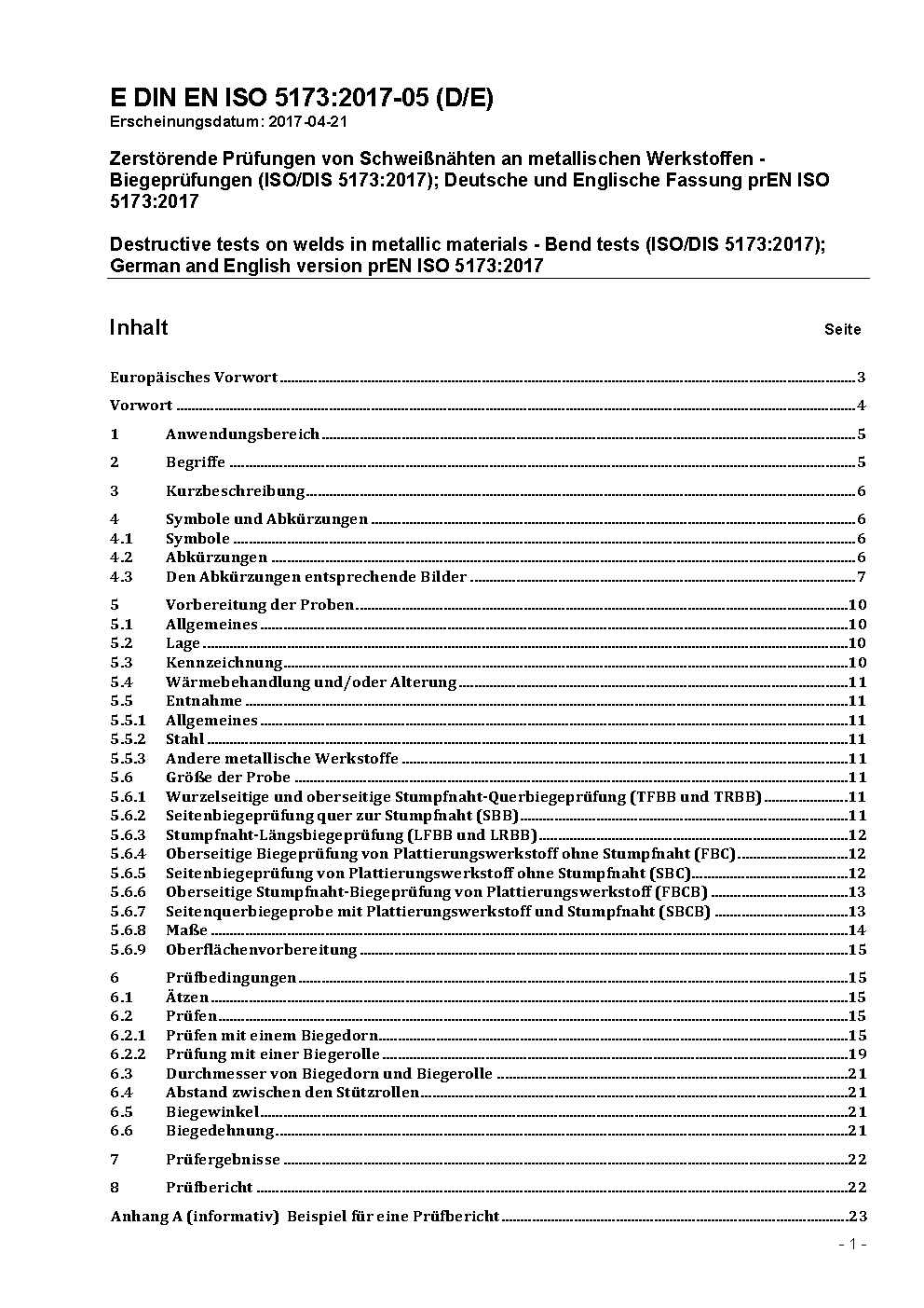 Destructive tests on welds in metallic materials - Bend tests (ISO 5173:2009 + Amd 1:2011); German version EN ISO 5173:2010 + A1:2011
