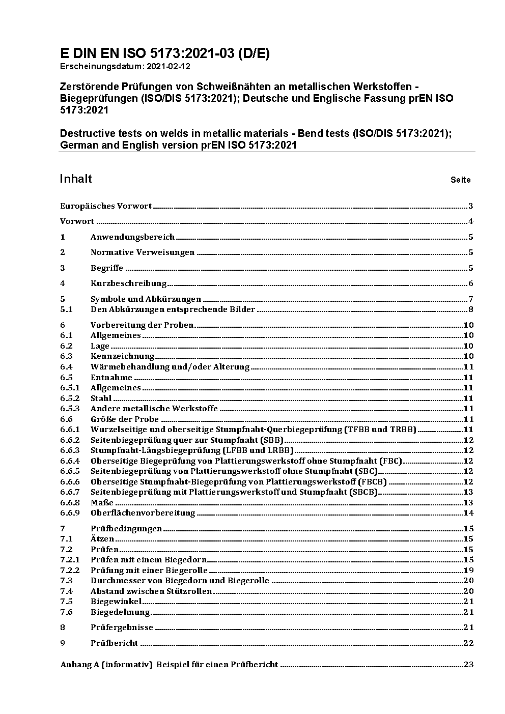 Zerstörende Prüfungen von Schweißnähten an metallischen Werkstoffen - Biegeprüfungen (ISO 5173:2009 + Amd 1:2011); Deutsche Fassung EN ISO 5173:2010 + A1:2011