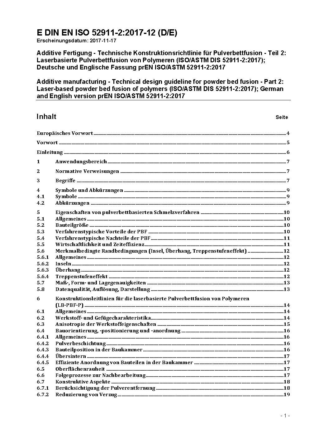 Additive Fertigung - Technische Konstruktionsrichtlinie für Pulverbettfusion - Teil 2: Laserbasierte Pulverbettfusion von Polymeren (ISO/ASTM DIS 52911-2:2017); Deutsche und Englische Fassung prEN ISO/ASTM 52911-2:2017