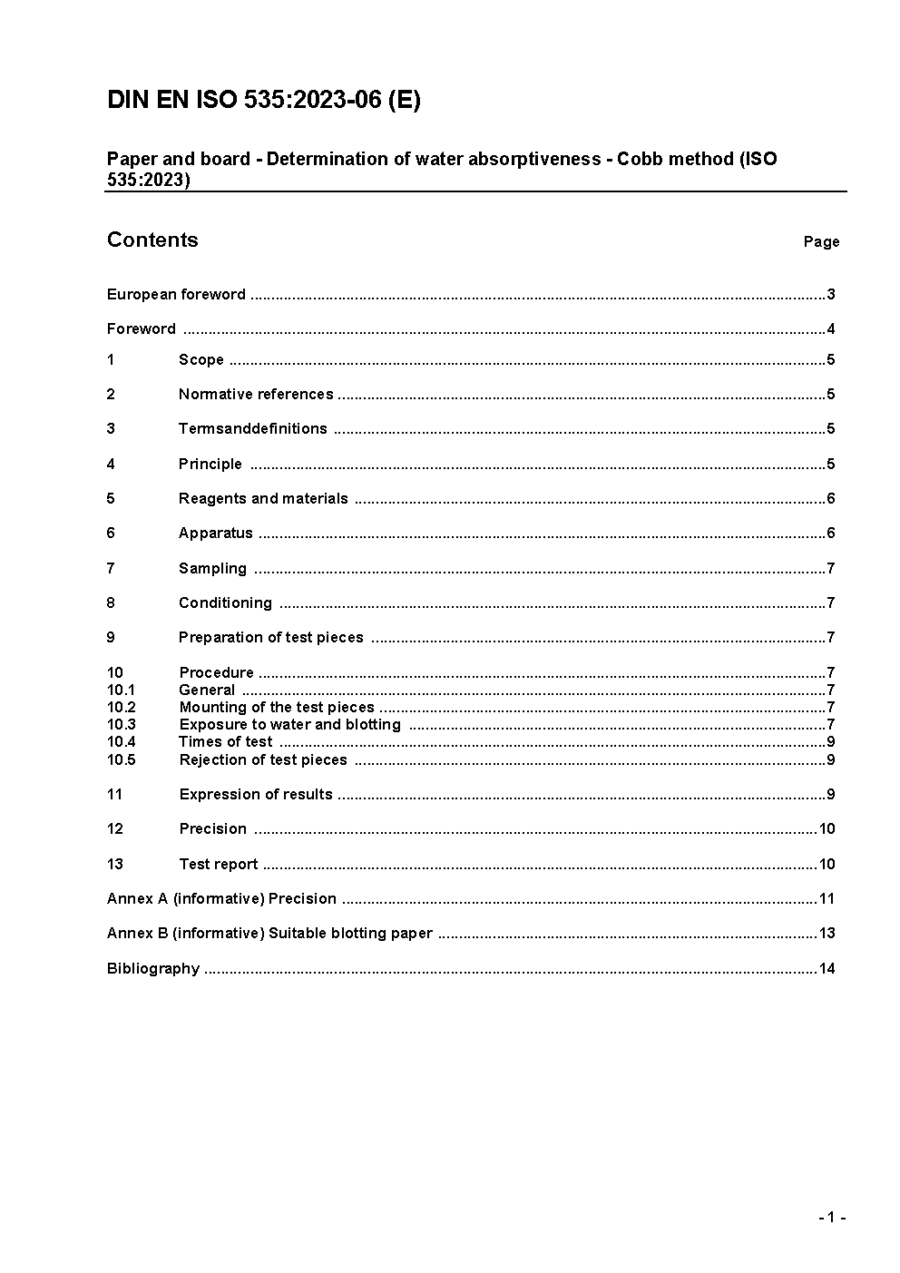 Paper and board - Determination of water absorptiveness - Cobb method (ISO/DIS 535:2022); German and English version prEN ISO 535:2022