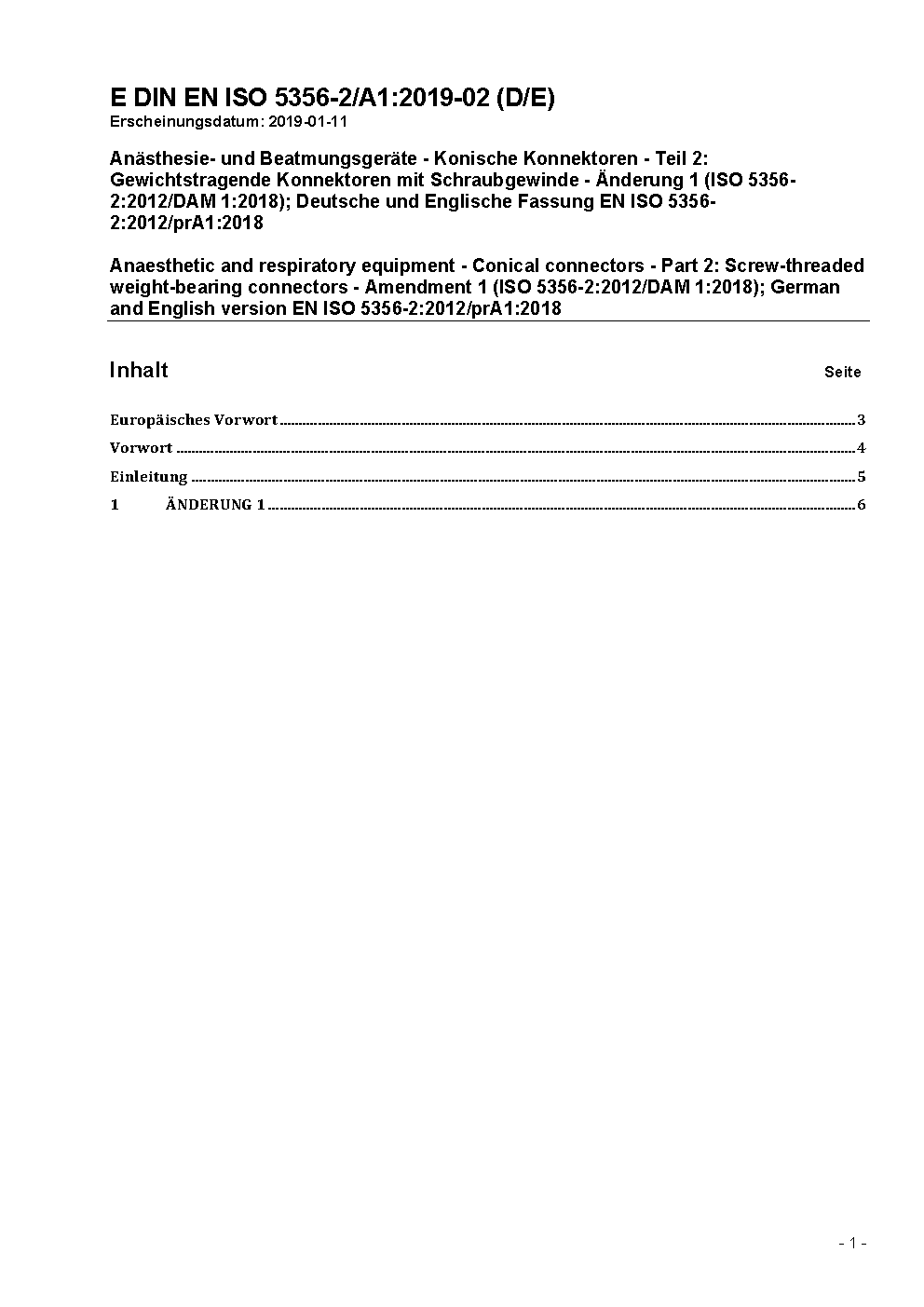 Anaesthetic and respiratory equipment - Conical connectors - Part 2: Screw-threaded weight-bearing connectors (ISO 5356-2:2012); German version EN ISO 5356-2:2012