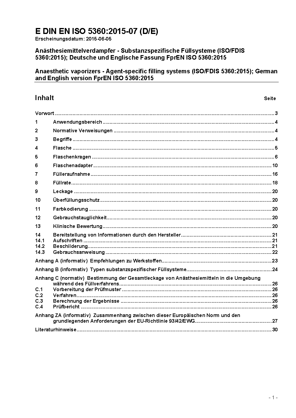DIN EN ISO 5360 (2009-08) remains valid alongside this standard until 2015-01-31.*A transition period, as set out in DIN EN ISO 5360 (2016-07), exists until 2019-03-31.