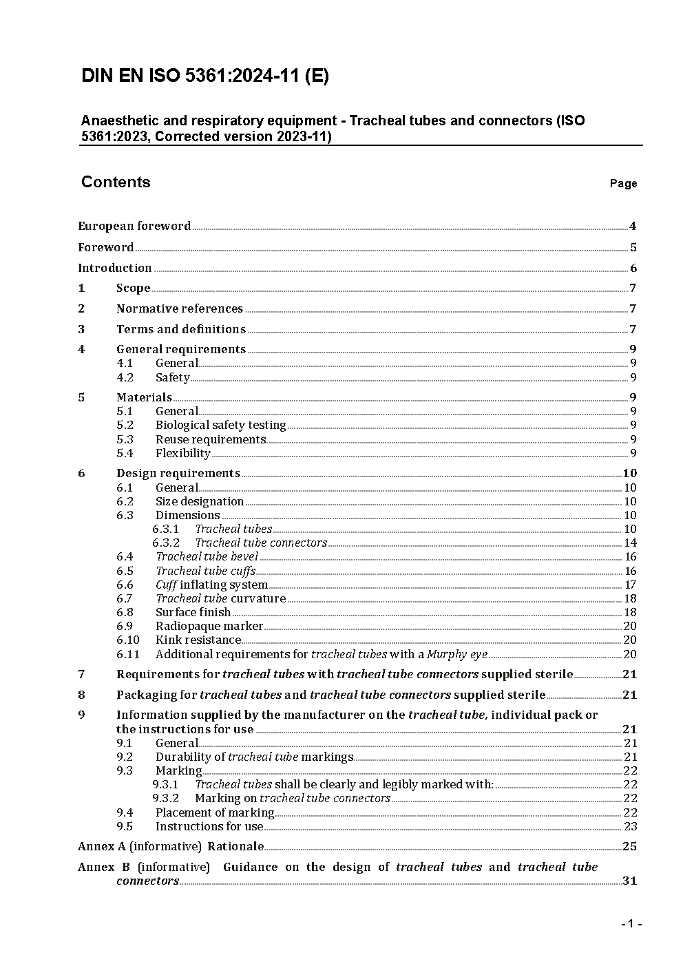 Anaesthetic and respiratory equipment - Tracheal tubes and connectors (ISO 5361:2016); German version EN ISO 5361:2016.
